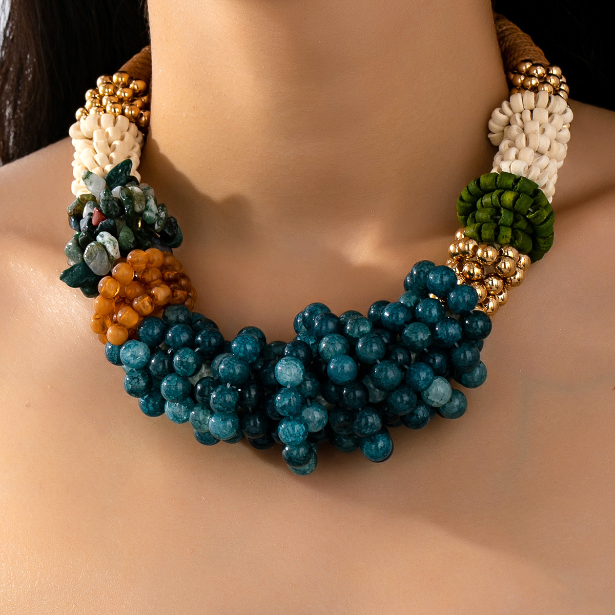 ヨーロッパとアメリカのクロスボーダーファッショントレンドビーズ巻きパーソナライズ誇張ハイエンドネックレスニッチデザイン気質鎖骨チェーン