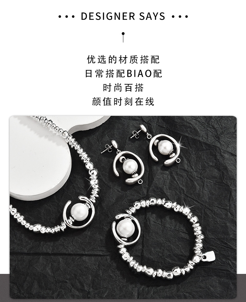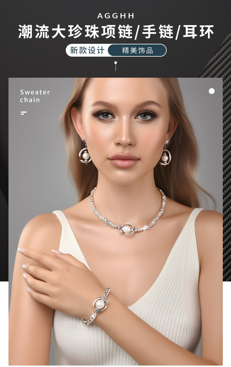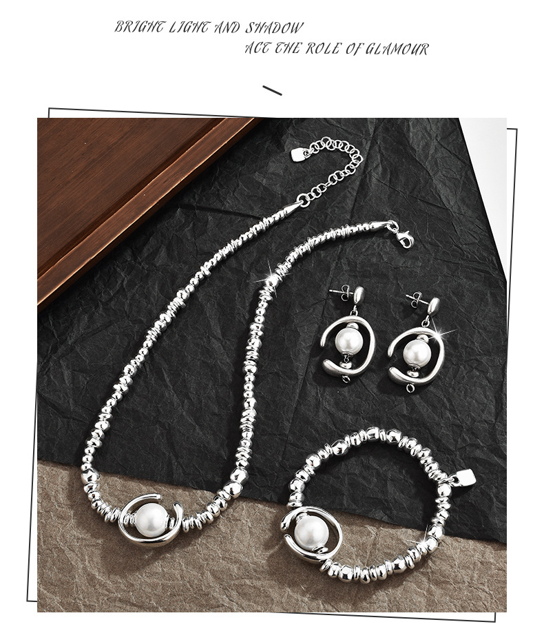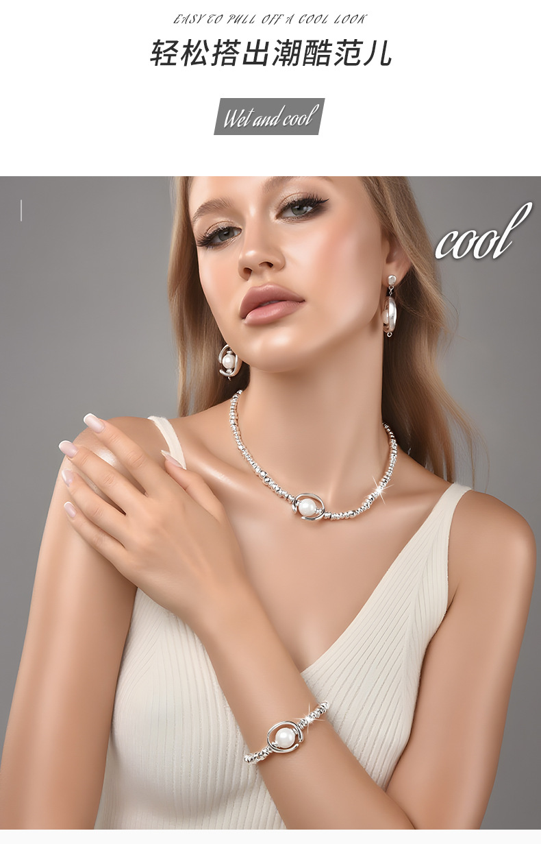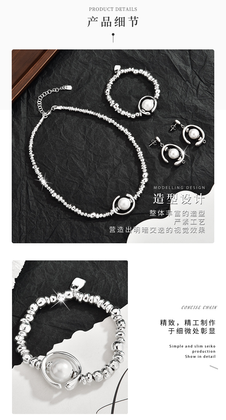 厂家直销西班牙碎银珍珠项链时尚轻奢手链气质简约耳环套装跨境批