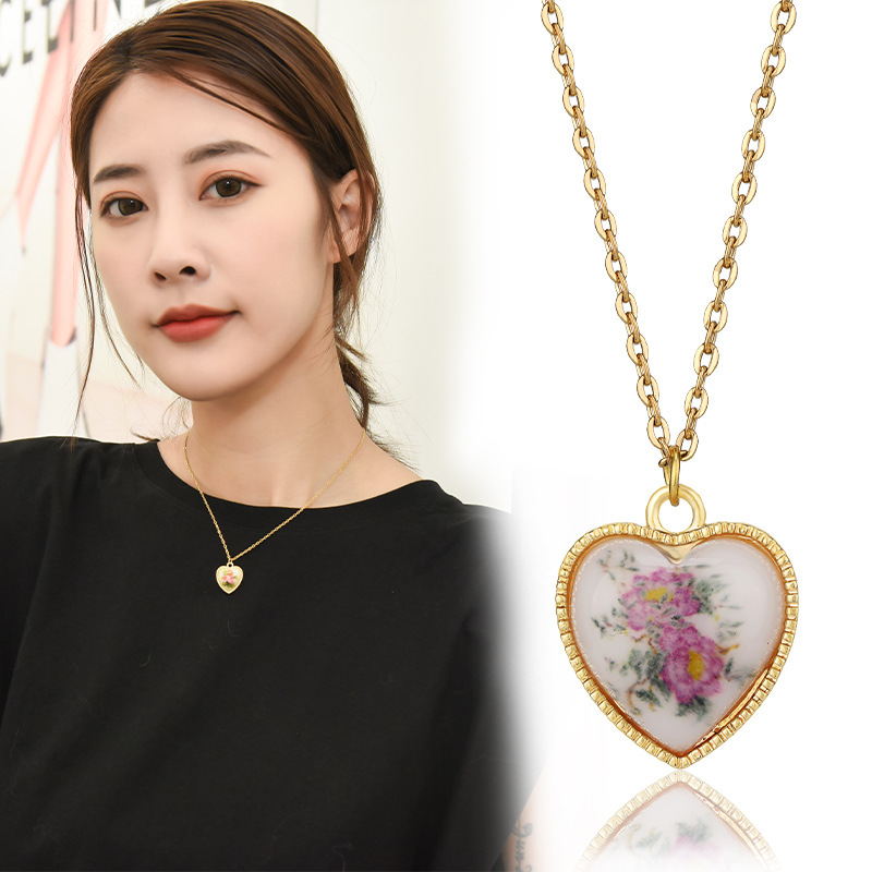 小衆軽豪華陶磁器バラ桃心チタン鋼の短いネックレス女性2021新型百合気質ペンダント卸売り