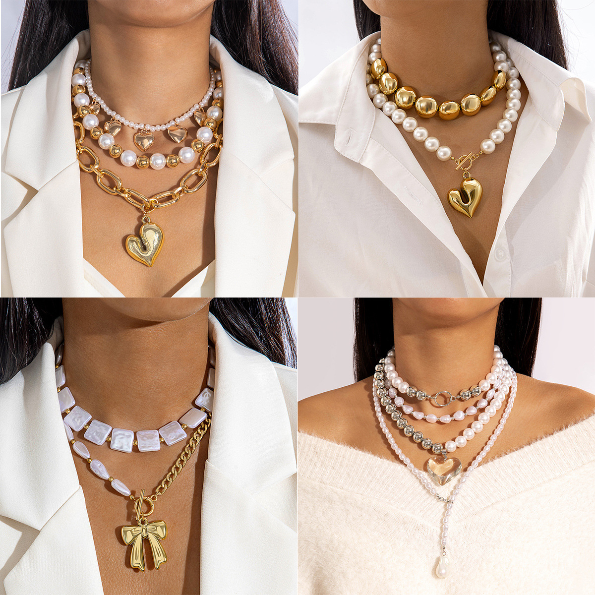 欧米風クロスボーダーファッションCCB新作レターネックレス手作りパールリボン多層重ね付けY字ネックレス