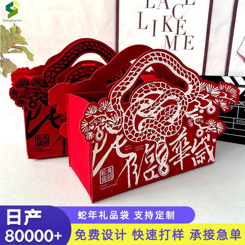フェルトバッグ2025蛇年の新型のお土産バッグを持って国潮大容量のショッピングフェルトの手提げ袋をカスタマイズします。