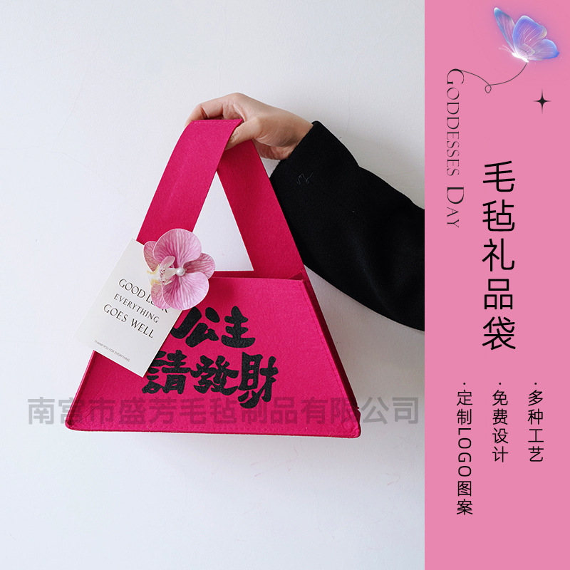 フェルトバッグギフトバッグ高颜値三角形バッグお土産袋印刷可能パターンロゴフェルト手提げ袋