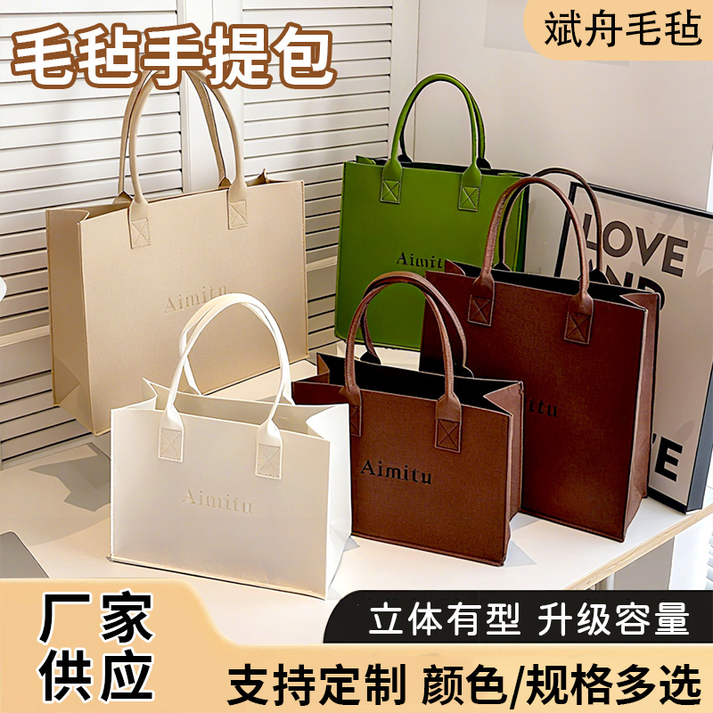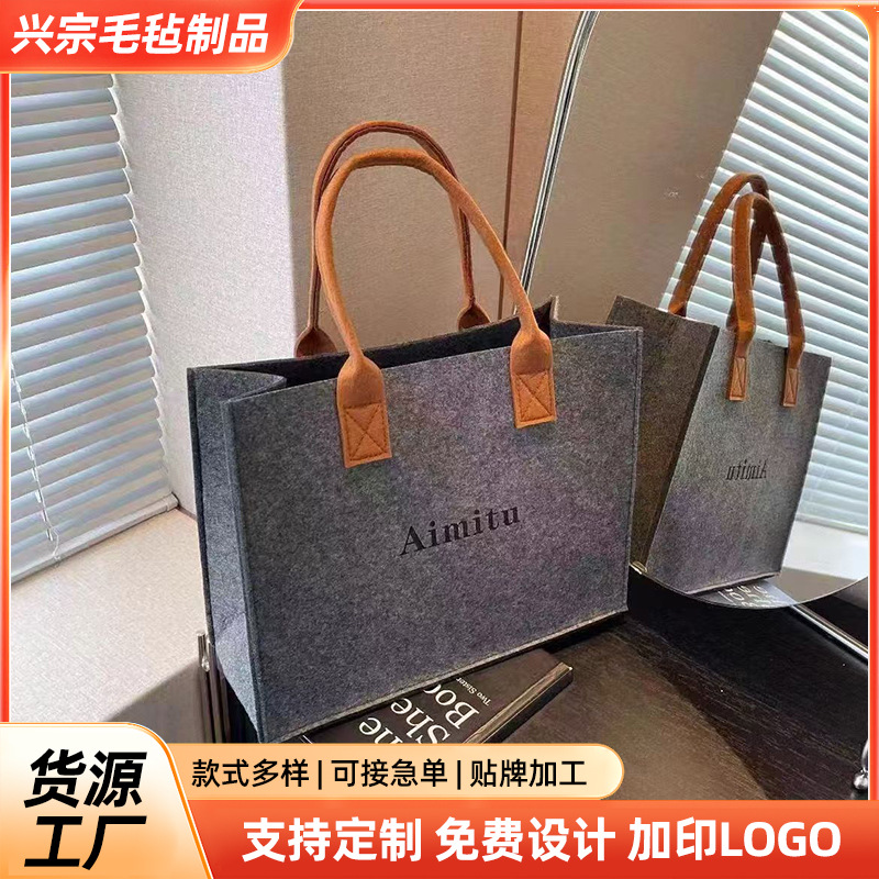 2025 フェルトハンドバッグインターネット有名人企業ギフトバッグ広告バッグトレンディなシンプルな大容量フェルトトートバッグ