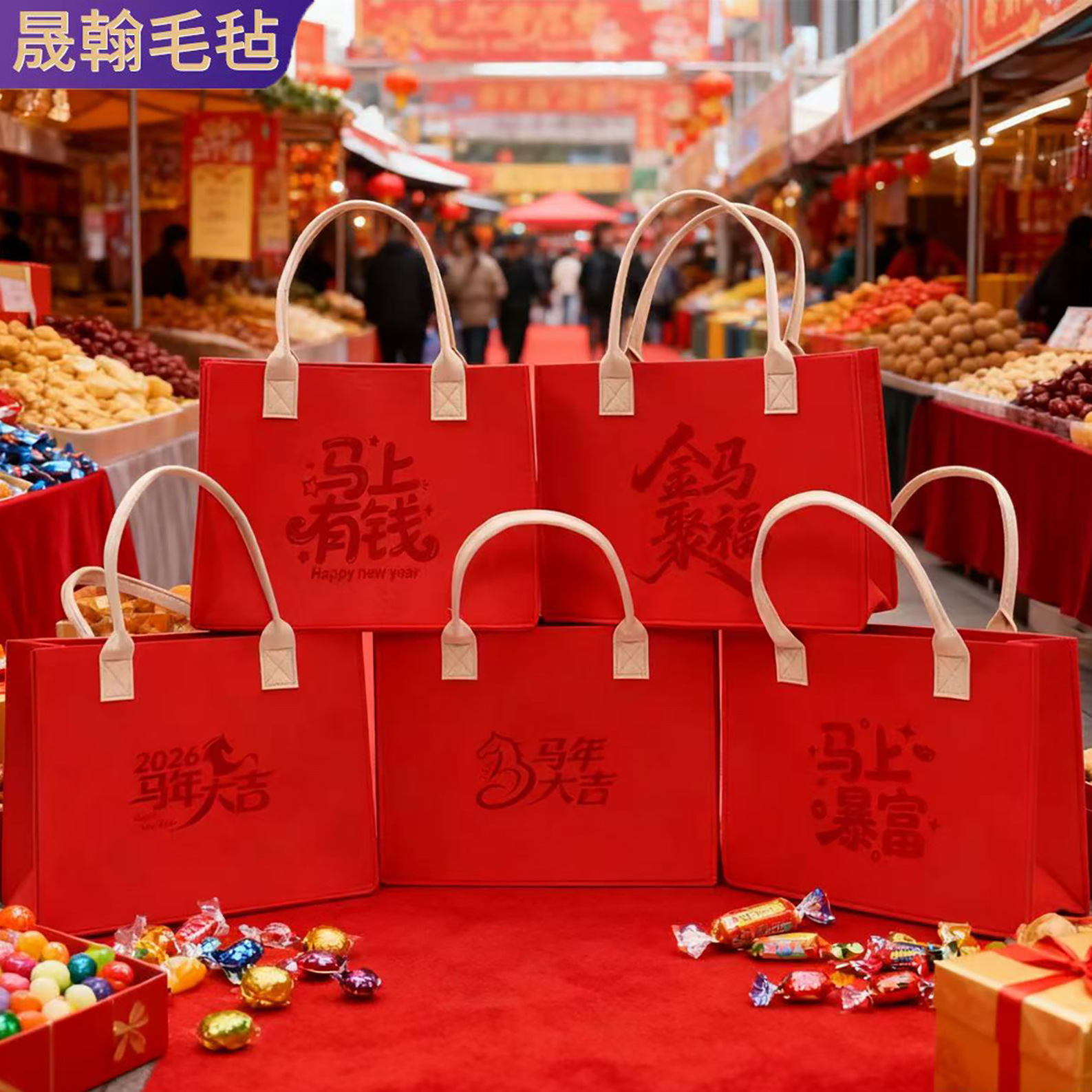 2026马年毛毡包手提袋超大毛毡手提袋商务年会节日礼品毛毡礼品袋