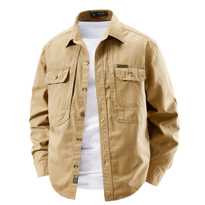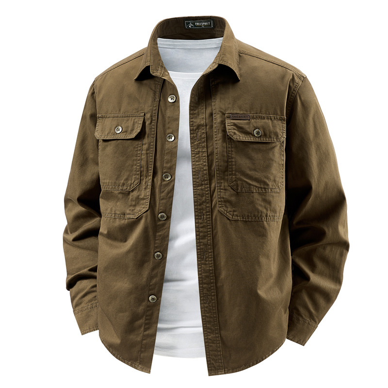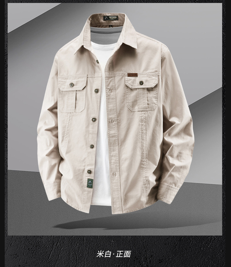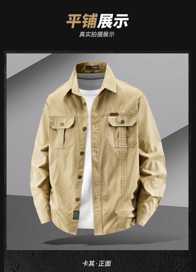 2025重工重磅春秋季新款纯棉多口袋工装外套宽松大码男士长袖衬衣