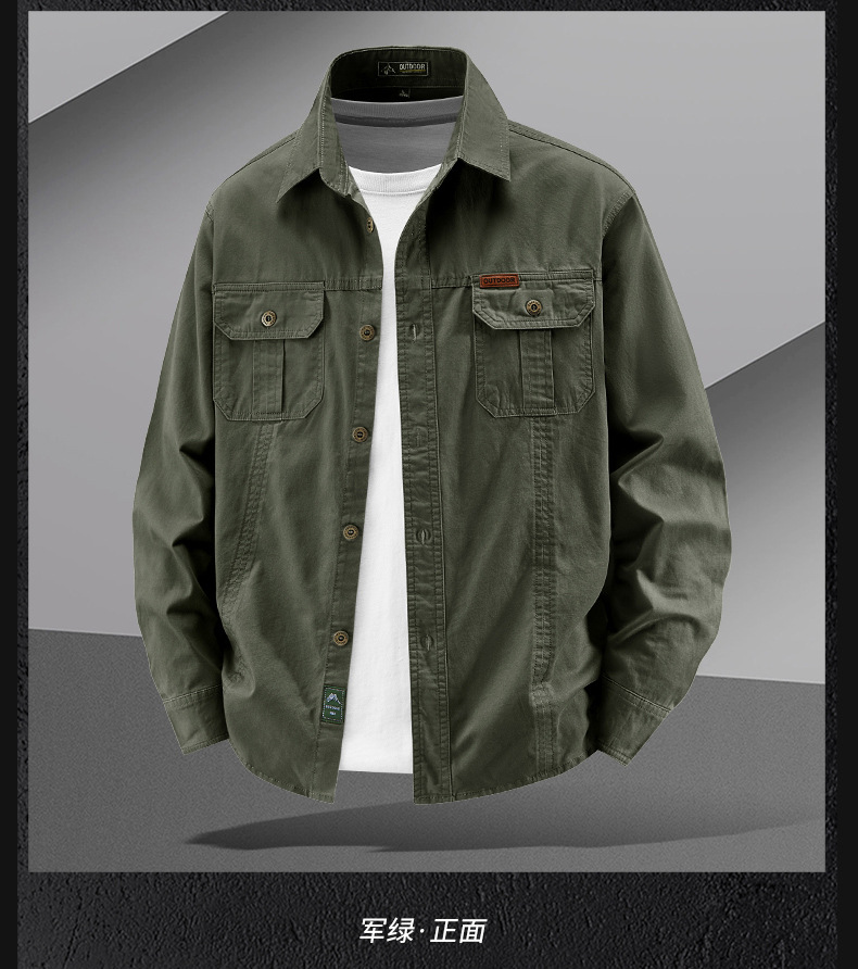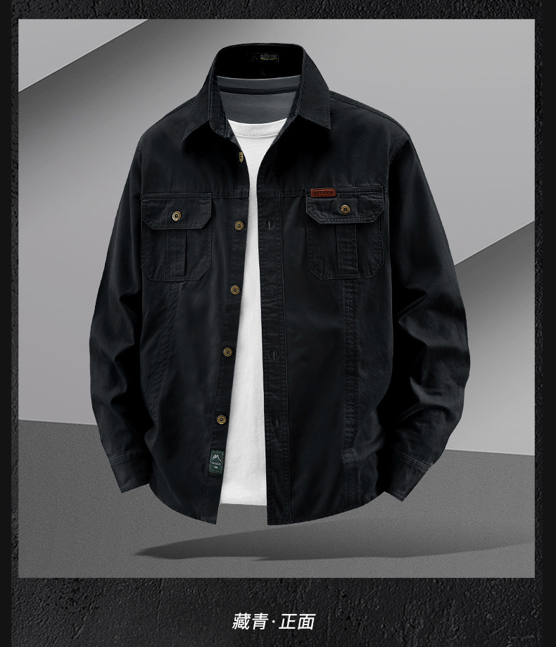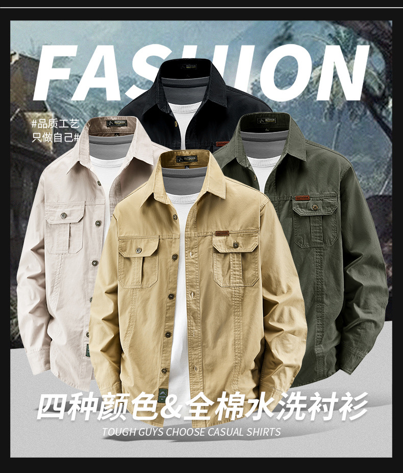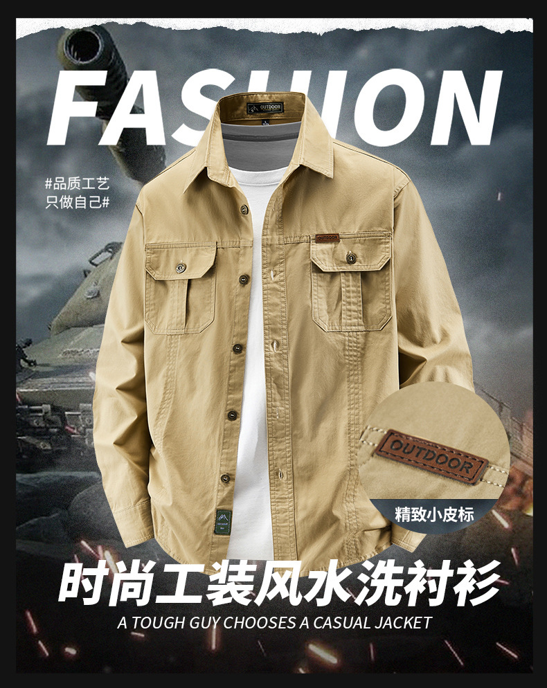 经典工装长袖衬衫春秋季男士休闲百搭工装水洗衬衣纯棉寸衣可团购