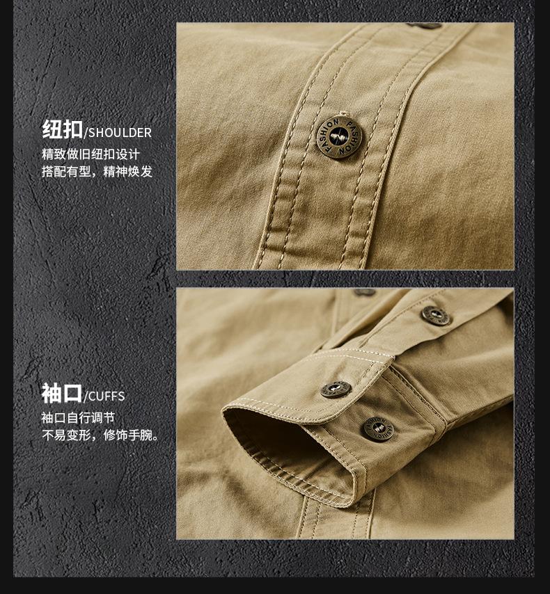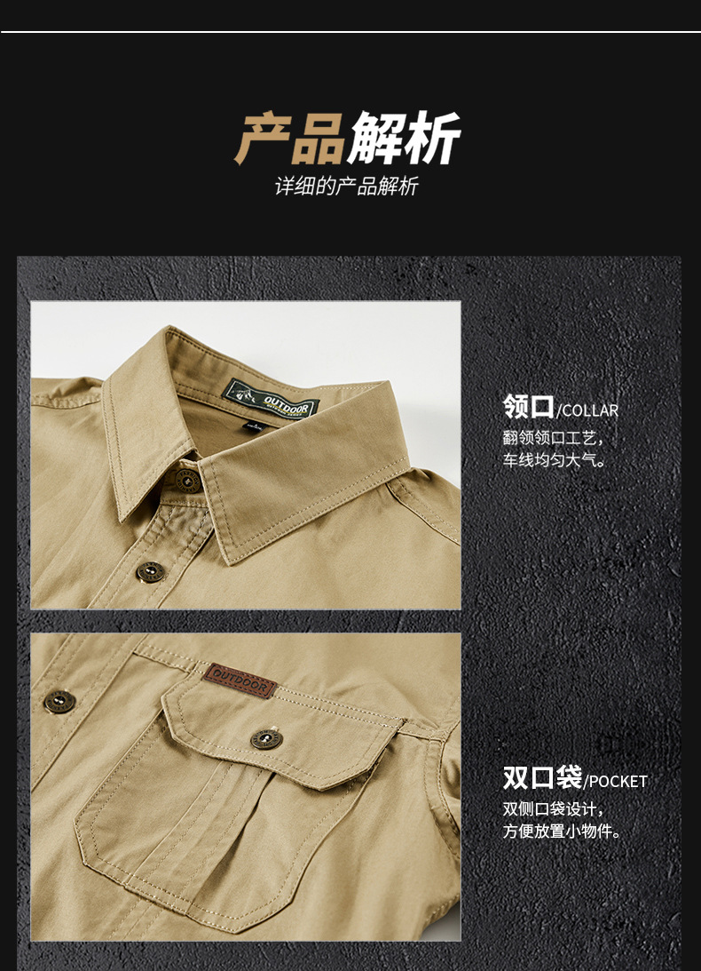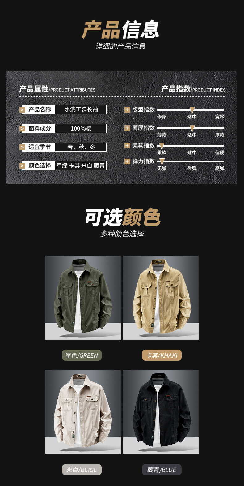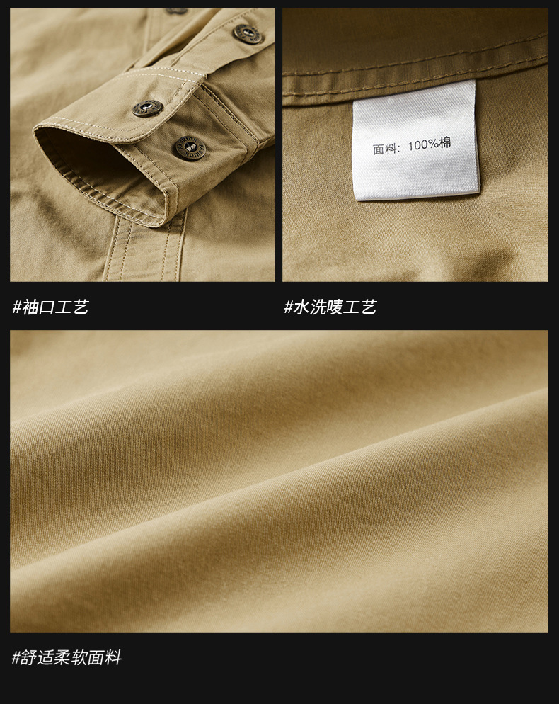 经典工装长袖衬衫春秋季男士休闲百搭工装水洗衬衣纯棉寸衣可团购