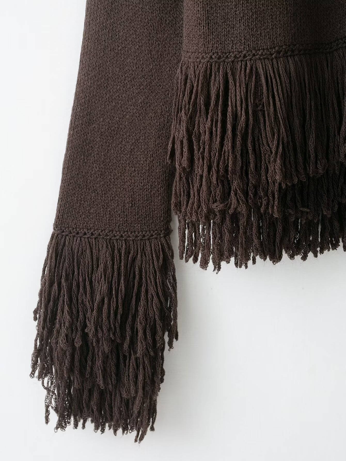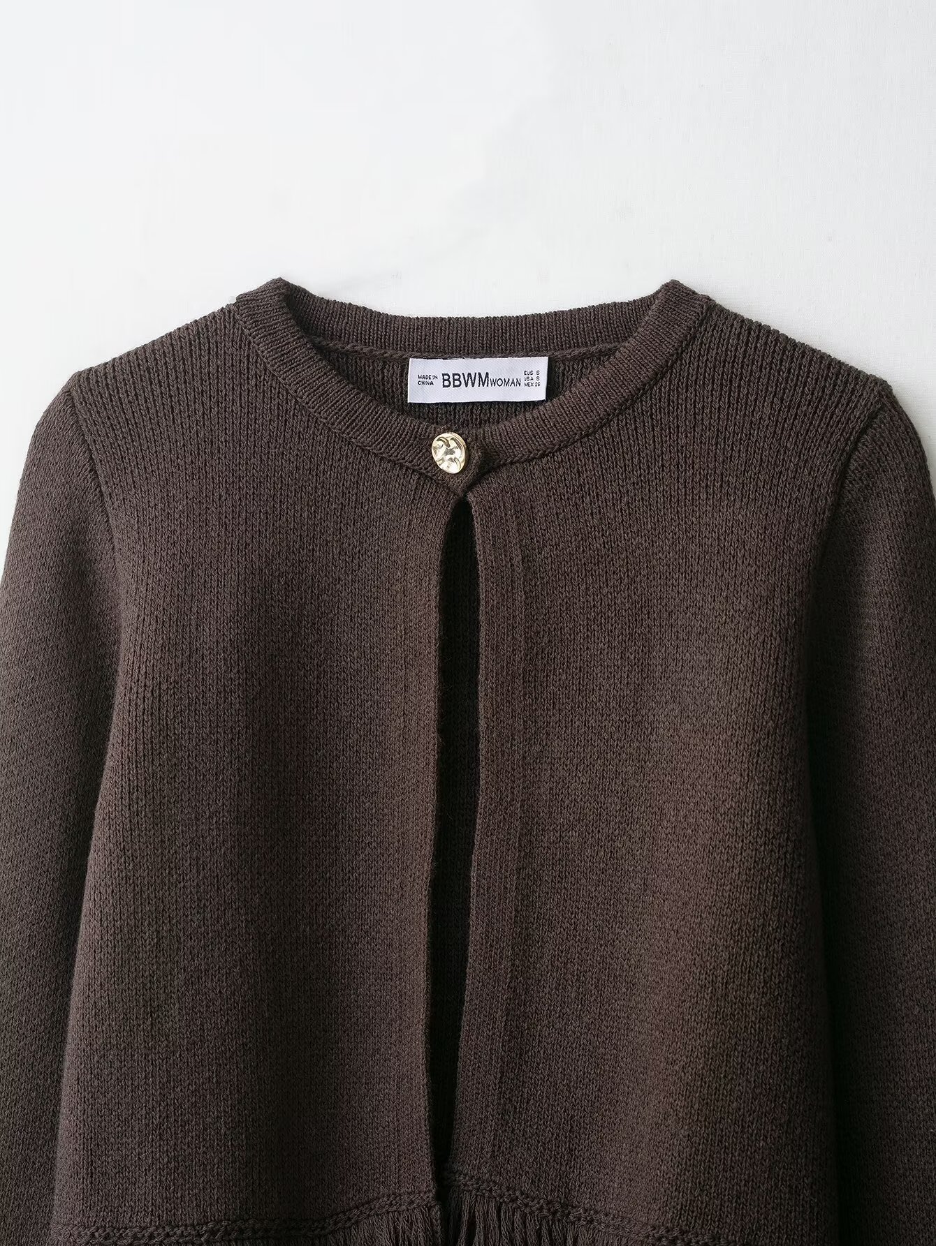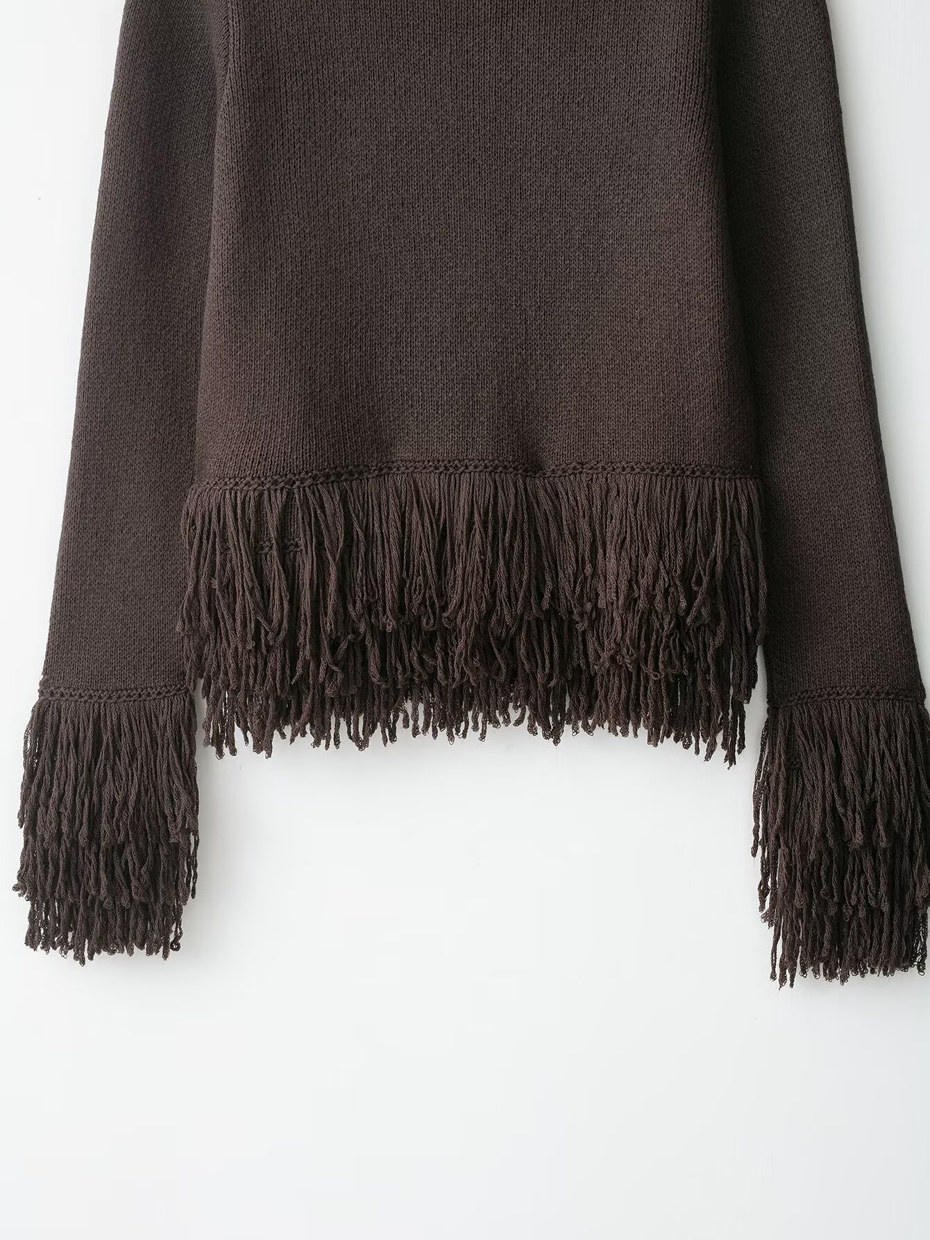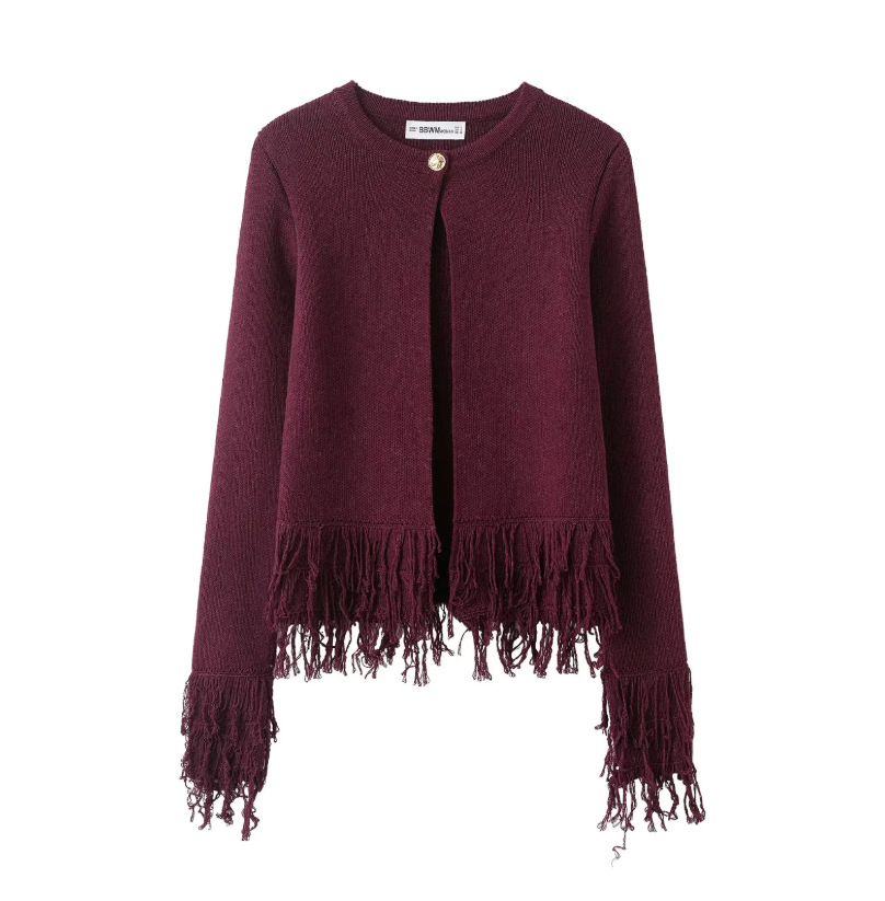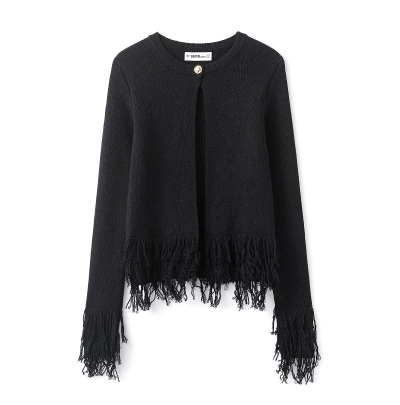 跨境女装批发欧美风纯色宽松流苏纽扣设计感小众针织衫6427109