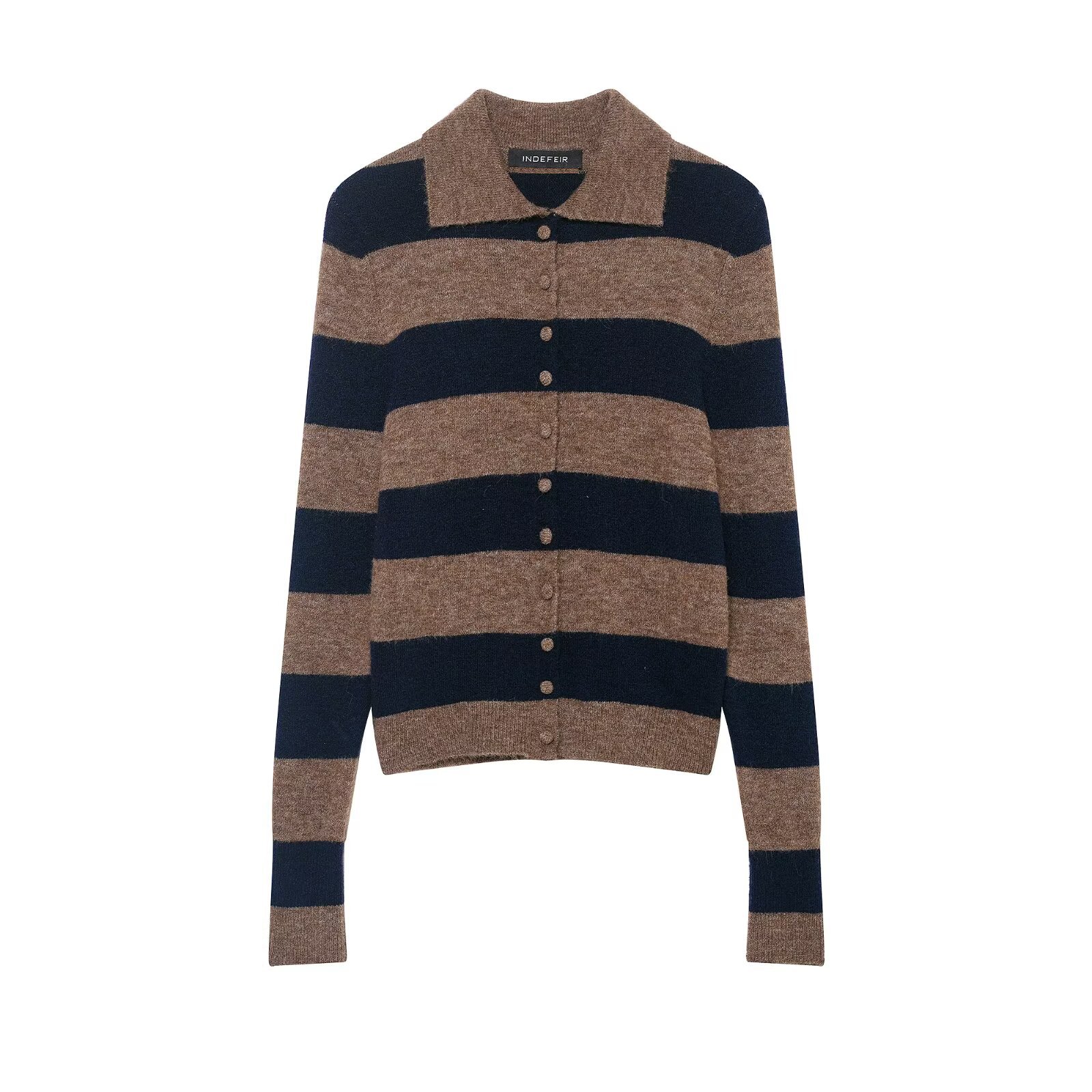 跨境女装批发 秋冬新款时尚撞色条纹针织外套宽松打底毛衣开衫女