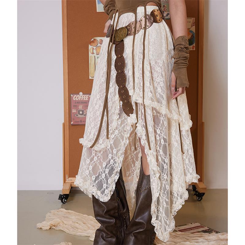 女性用の多用途なレイヤードイレギュラースカート、夏のデザインのドレープレーススカート