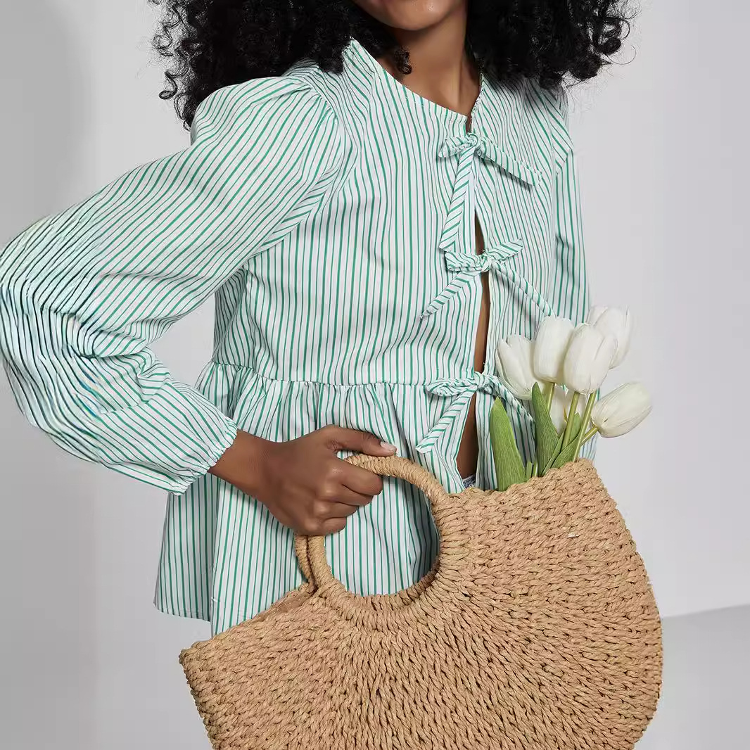 国境を越えた女装卸売り欧米風春夏の新型ゆるい甘い蝶ネクタイ長袖シャツ上着
