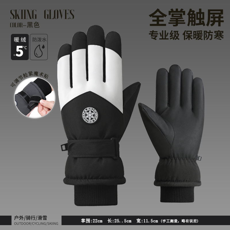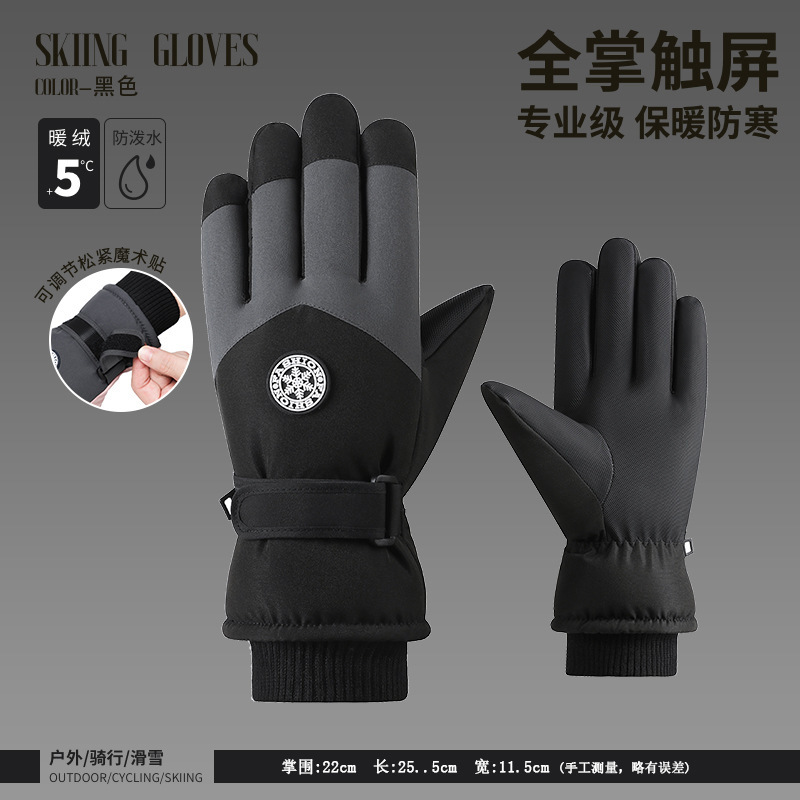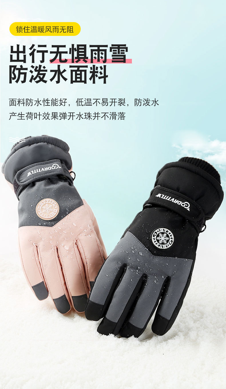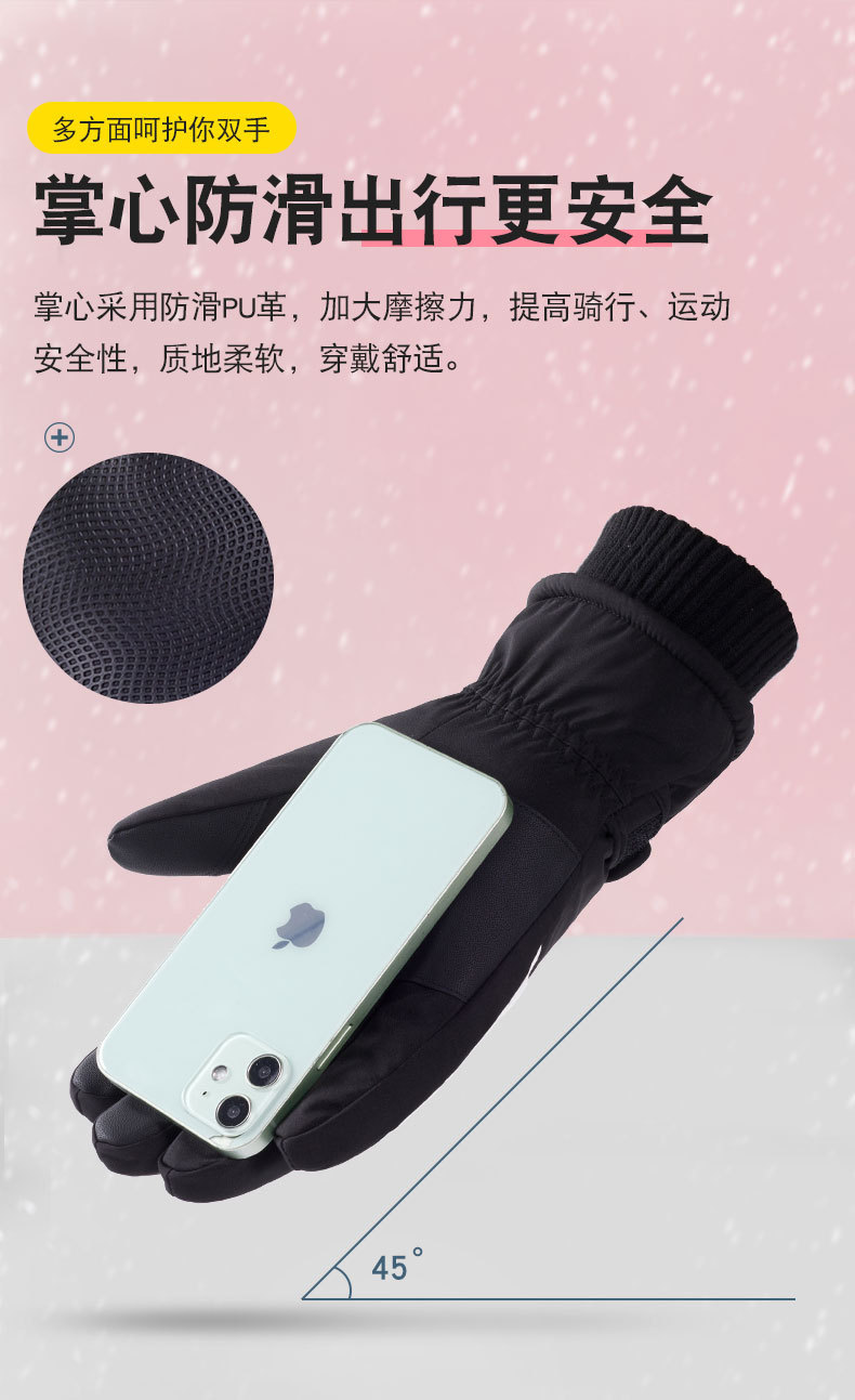 冬季加绒滑雪手套加厚防滑保暖登山防水手户外骑行电动车触屏手套