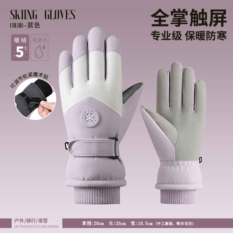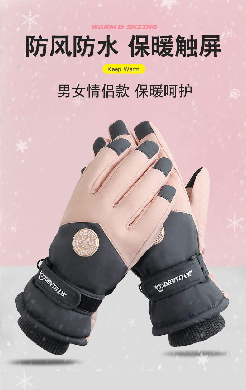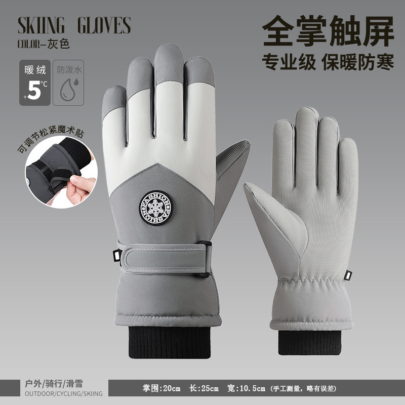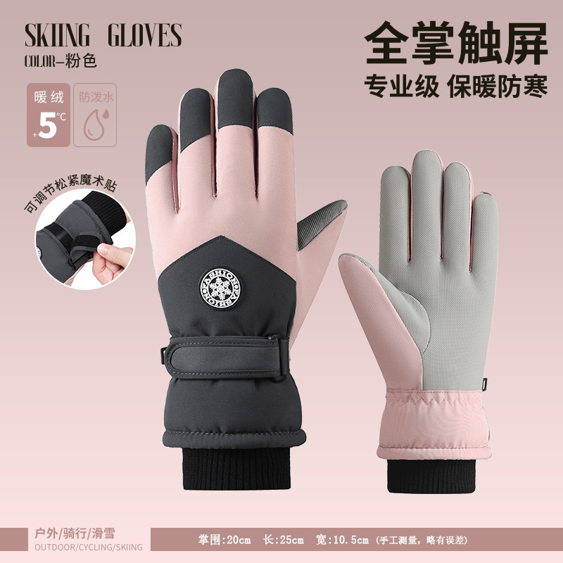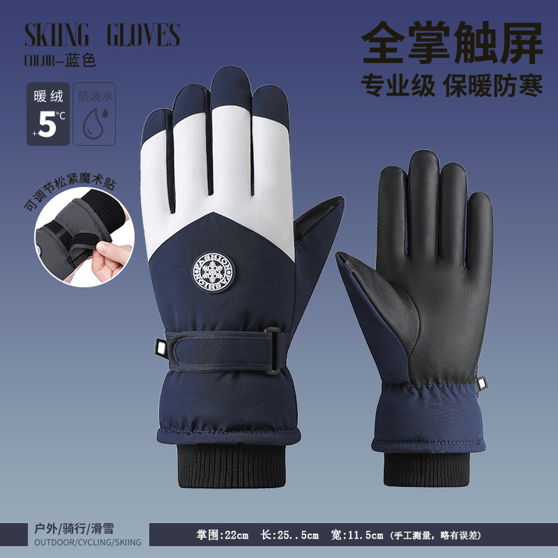 冬季加绒滑雪手套加厚防滑保暖登山防水手户外骑行电动车触屏手套