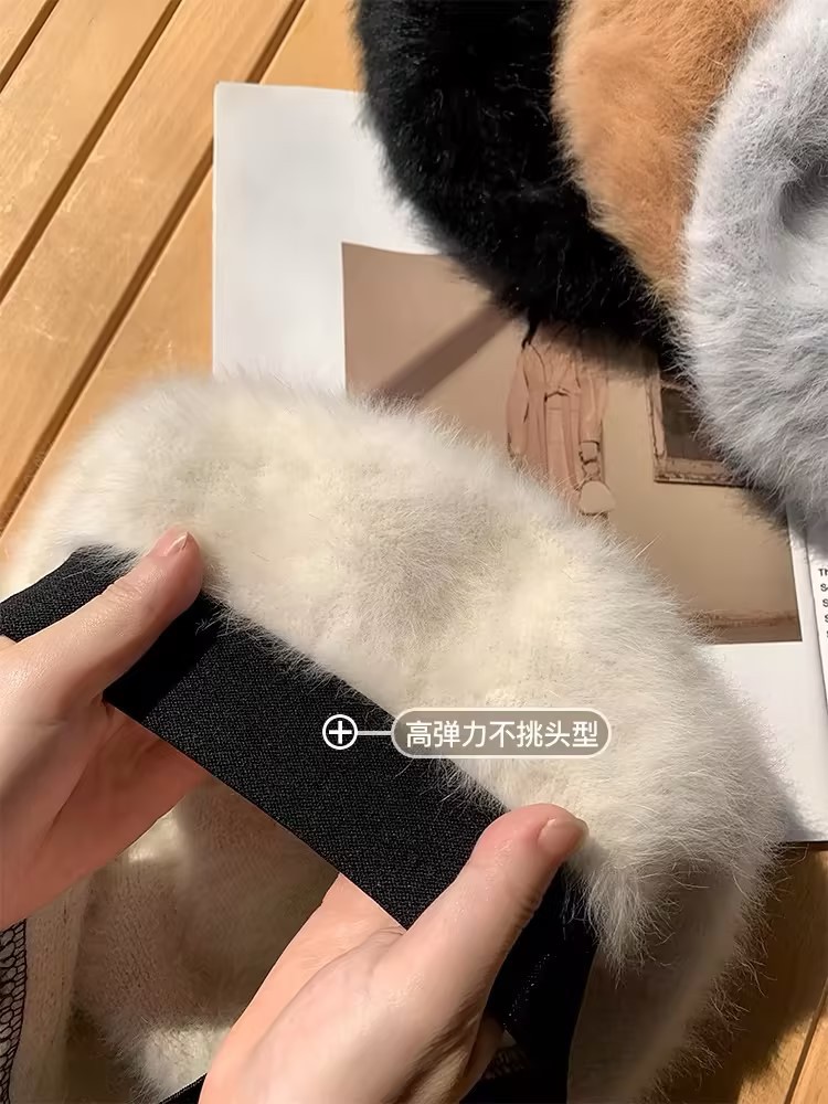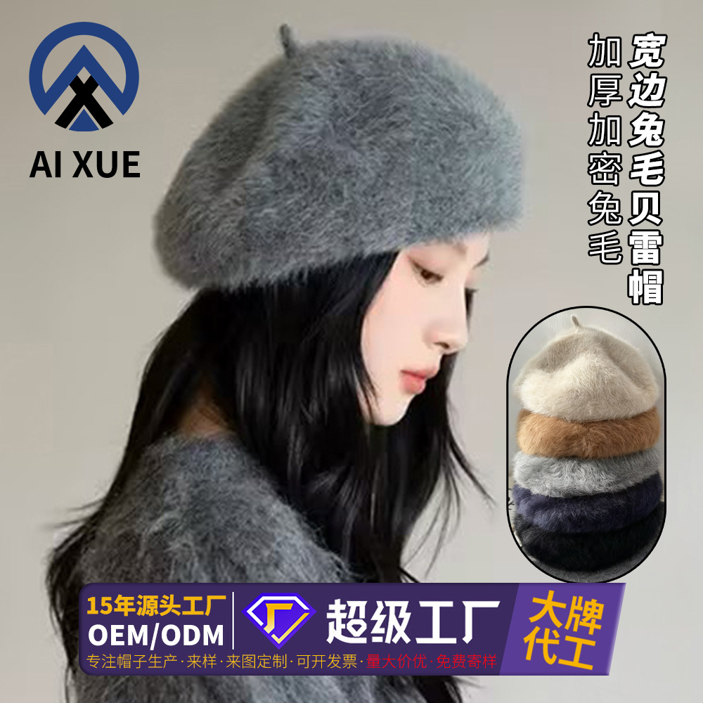 新款安哥拉兔毛贝雷帽秋冬保暖帽防寒毛绒帽大头围显脸小帽子定制