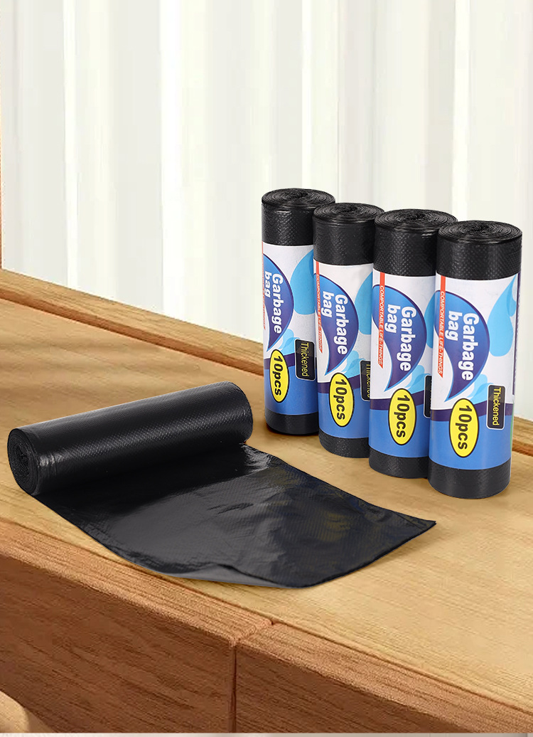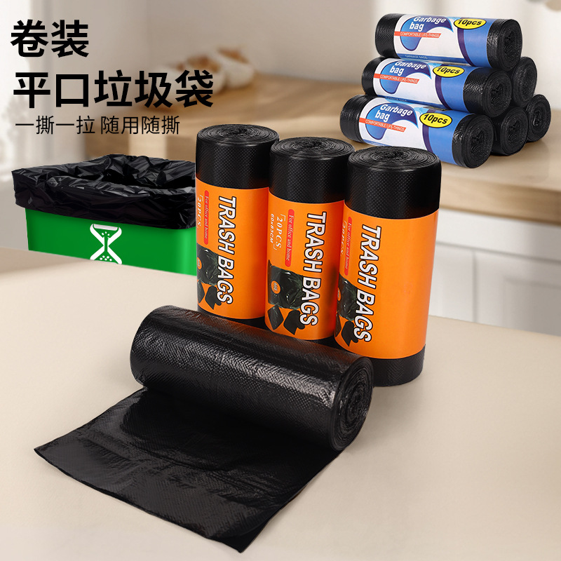 厚手のロール状家庭用・オフィス用・キッチン用・トイレ用など使い捨て黒色平口ゴミ袋プラスチック袋ゴミ箱