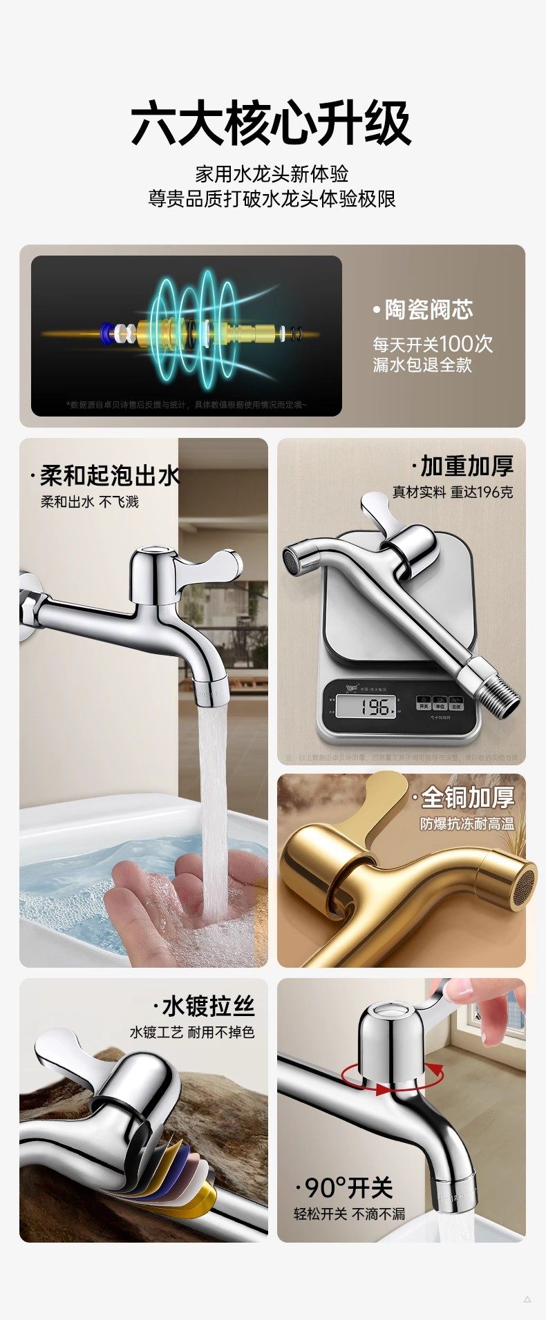 规格 9.5cm短款【洗衣机嘴】加厚全铜●漏水包退换,9.5cm短款【起泡网嘴】加厚全铜●漏水包退换,11cm中长款【洗衣机嘴】加厚全铜●全漏水包退换,11cm中长款【起泡网嘴】加厚全铜●全漏水包退换,13.5cm特长款【洗衣机嘴】加厚全铜●全漏水包退换,13.5cm特长款【起泡网嘴】加厚全铜●全漏水包退换,17cm特长款【洗衣机嘴】加厚全铜●全漏水包退换,17cm特长款【起泡网嘴】加厚全铜●全漏水包退换,9CM短款【304不锈钢】抗冻防晒☆大出水量(4分卡扣),9CM短款【304不锈钢】抗冻防晒☆大出水量(起泡网嘴),13CM中长款【304不锈钢】抗冻防晒☆大出水量(4分卡扣),13CM中长款【304不锈钢】抗冻防晒☆大出水量(起泡网嘴),16CM加长款【304不锈钢】抗冻防晒☆大出水量(4分卡扣),16CM加长款【304不锈钢】抗冻防晒☆大出水量(起泡网嘴),4分止水嘴【特厚全铜】防爆防漏☆脱管止水☆质保50年