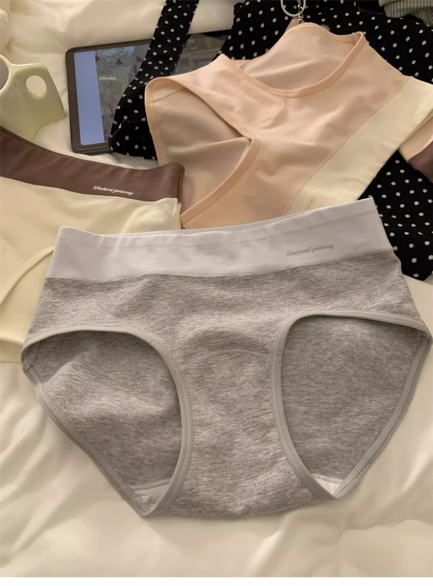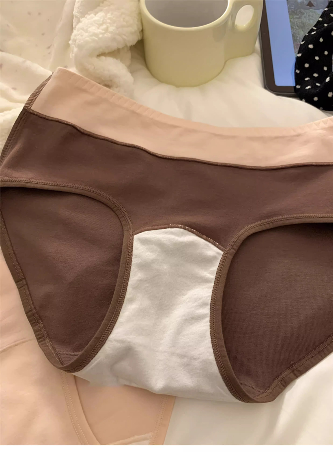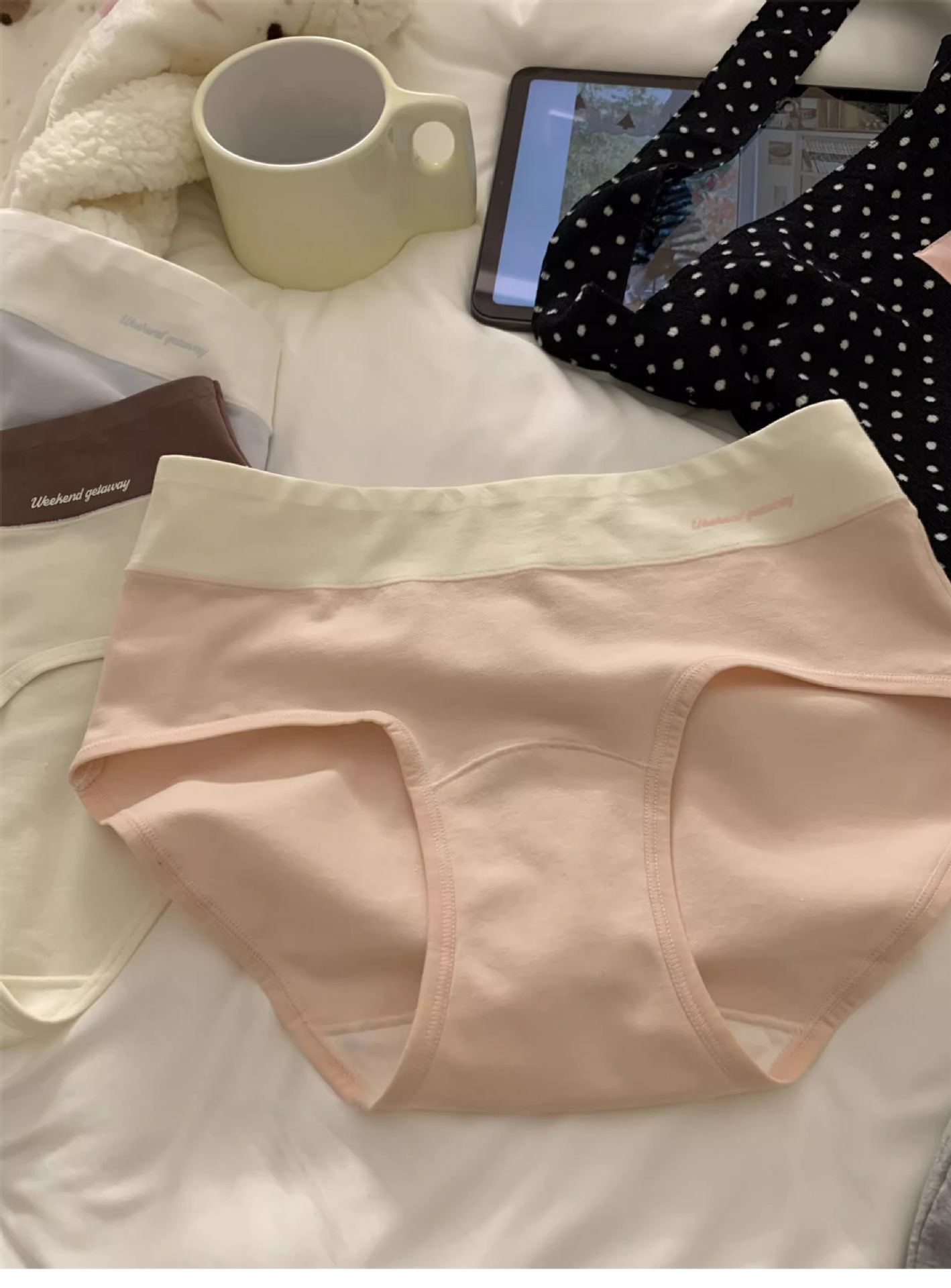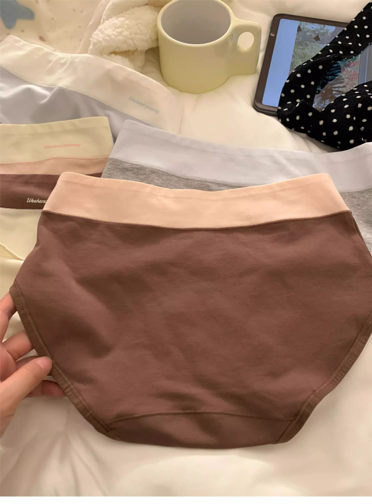 10A抗菌美拉徳拼色女士纯棉内裤全棉加长裆无痕中腰大码三角裤女