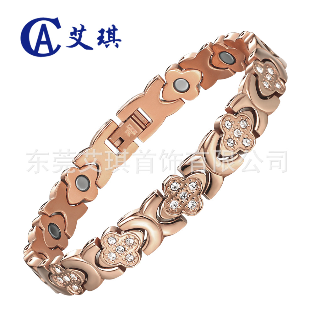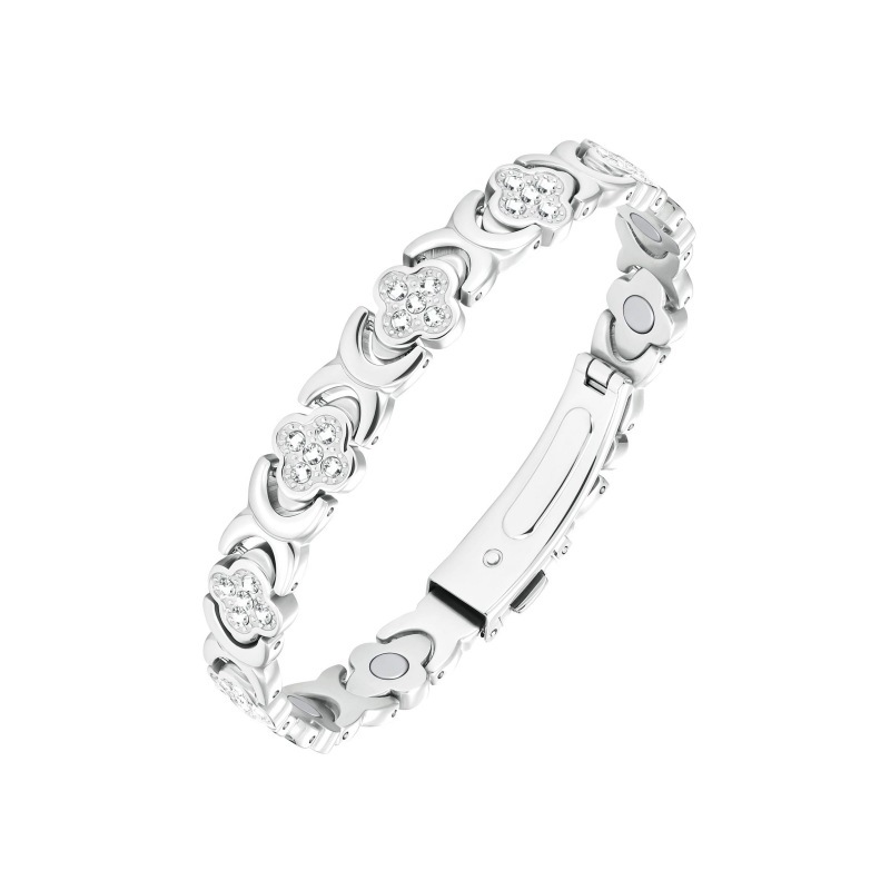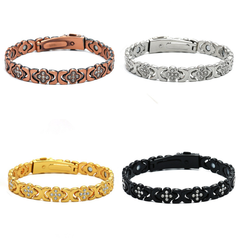 跨境爆款时尚轻奢女士幸运草不锈钢手链情侣磁石手链饰品磁疗手链