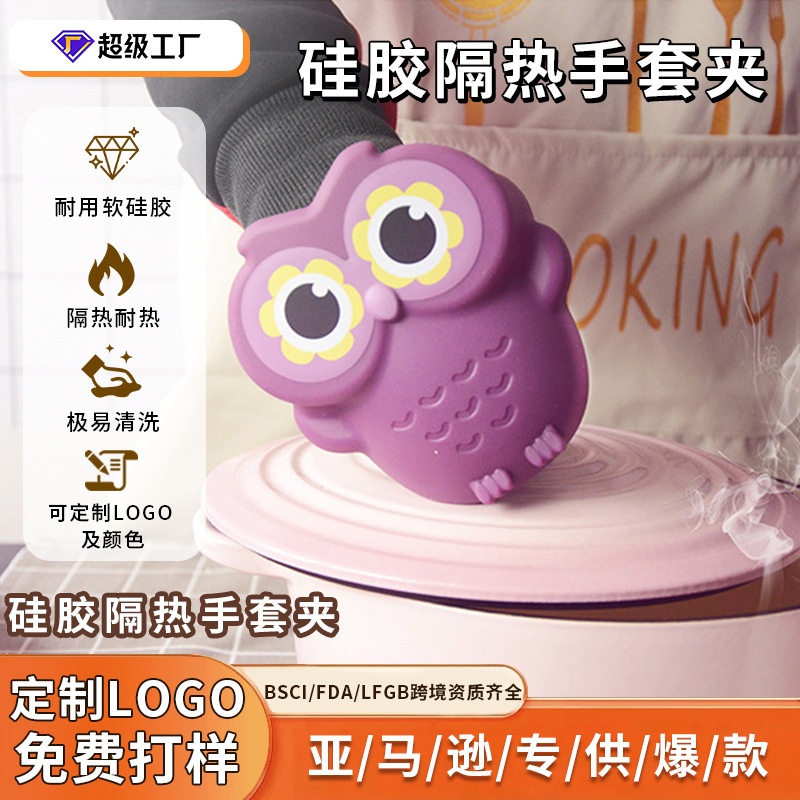 食品グレードのシリコン製断熱・耐熱・滑り止め電子レンジ・オーブン用砂鍋・スープ用漫画柄厚手耐熱手袋・グリップ
