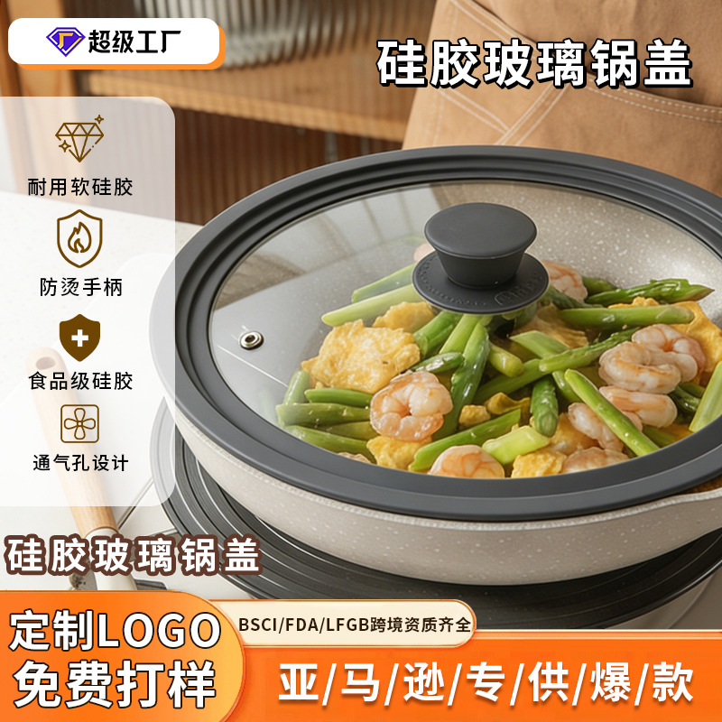 越境ECで人気の多機能視覚化防爆強化ガラス製、多様なサイズ展開、高温耐性、食品グレードシリコン製鍋蓋