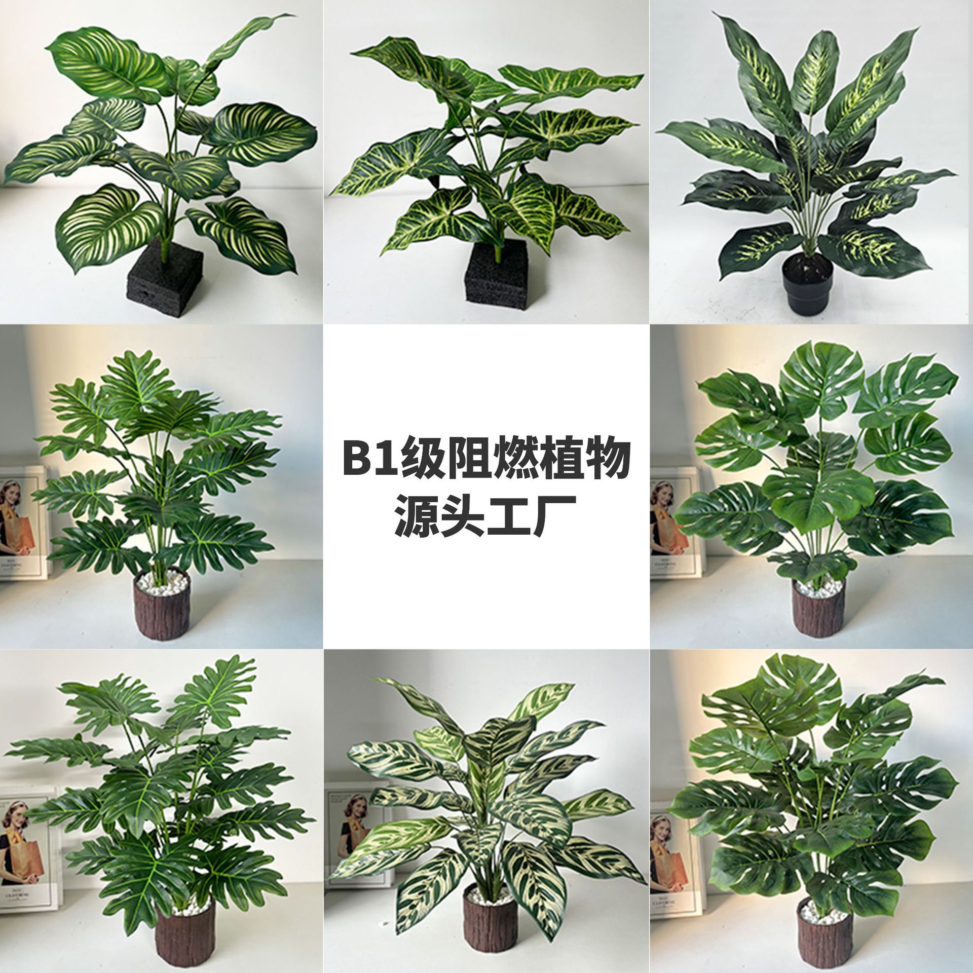 B1级阻燃龟背竹商超酒店专供假绿植春芋室内软装仿真植物万年青