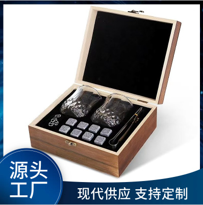 跨境木质威士忌酒杯套装木盒木制冰酒石收纳盒家用翻盖炭烧木盒