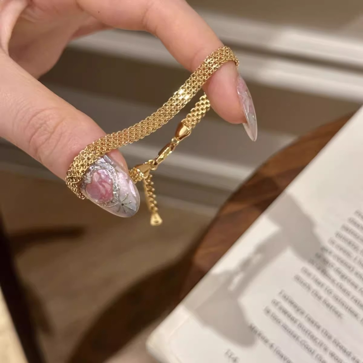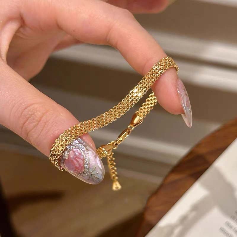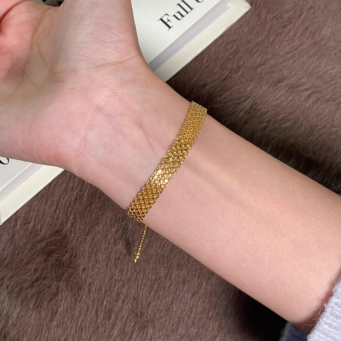 钛钢不掉色跨境爆款编织金色表带手链女新复古轻奢高级手饰工厂价