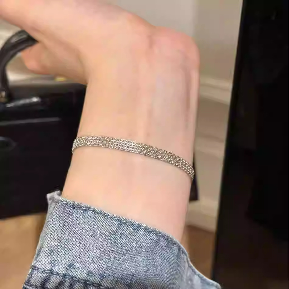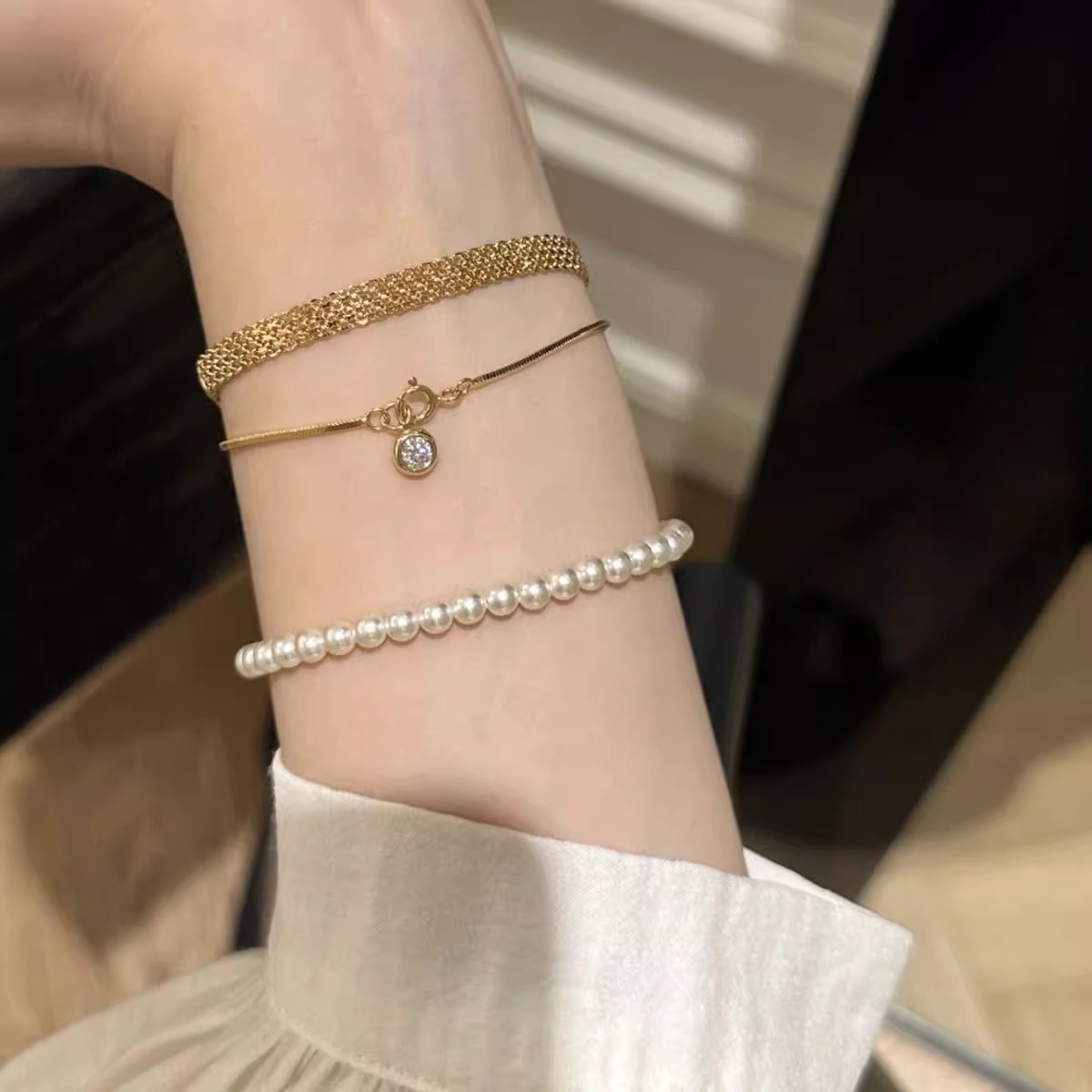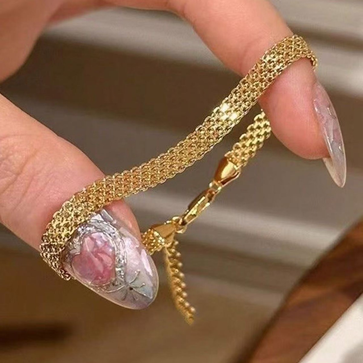 钛钢不掉色跨境爆款编织金色表带手链女新复古轻奢高级手饰工厂价