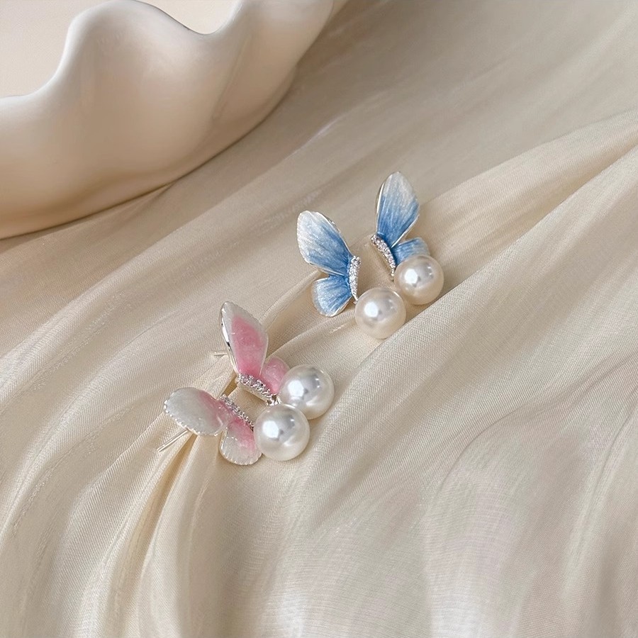 甘いスタイルの小さな新鮮なグラデーション蝶真珠のイヤリングニッチハイエンドファッションガーリーハート多用途イヤリング卸売