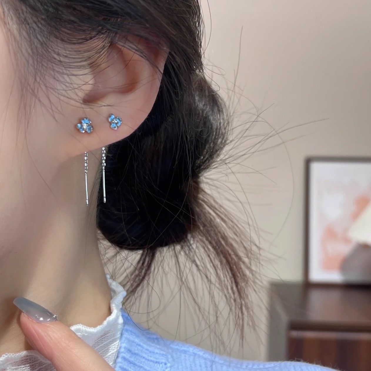 2025年初夏の新作イヤリング ブルーアイリスイヤリング ライトラグジュアリー ハイエンド 万能イヤリング ニッチデザイン 万能女性