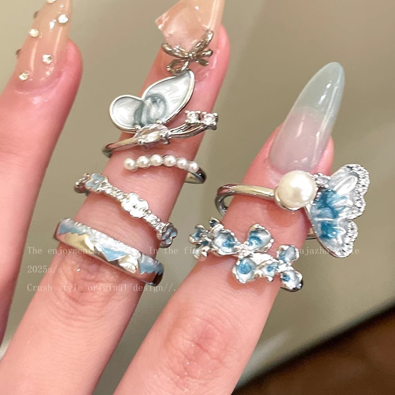 バタフライパールフラワーリング女性のための春 2025 新しいホットスタイル人差し指リングライト高級ニッチハイエンドスタッキングリング