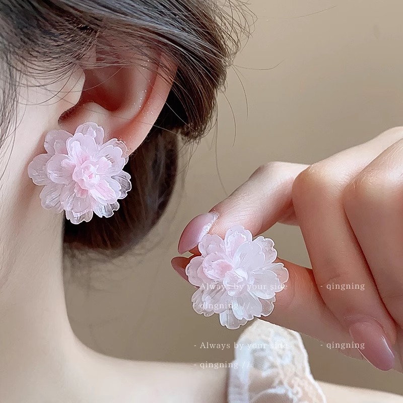 春と夏のピンクの桃の花のイヤリング女性のニッチデザインイヤリング 2025 新しいホットスタイル甘いスーパー妖精気質イヤリング