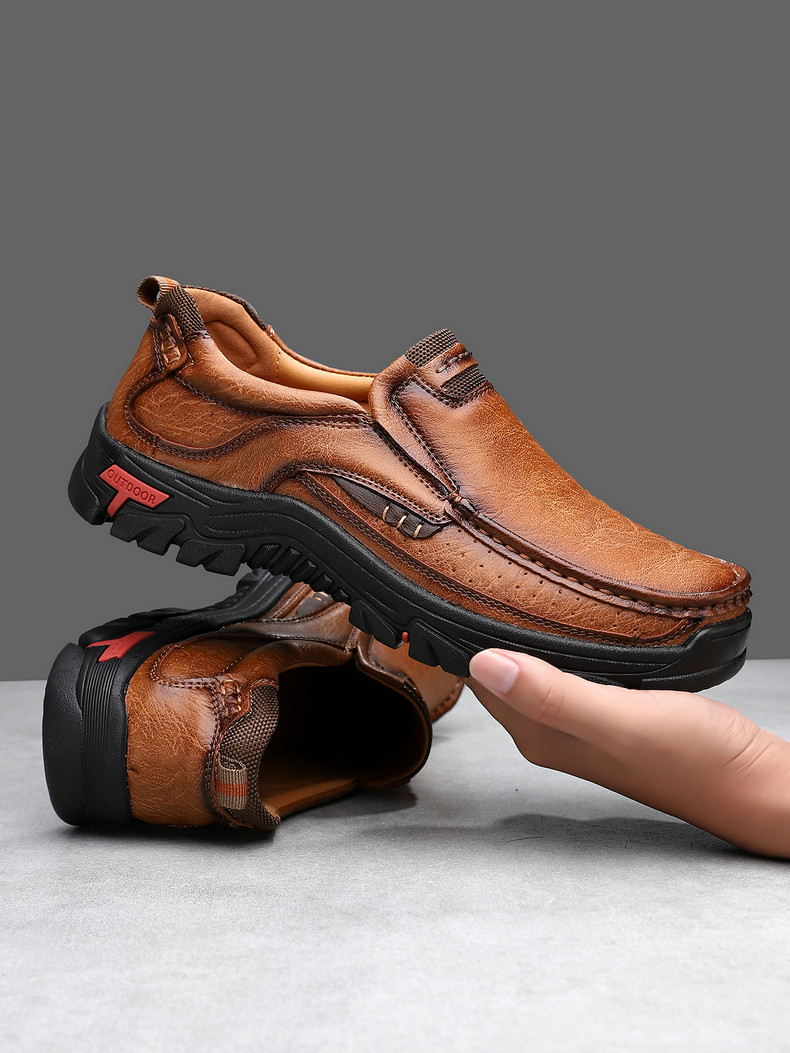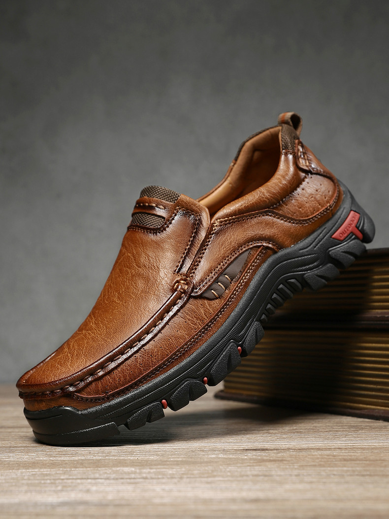 独立站亚马逊跨境爆款皮鞋男款真皮大码男士户外鞋休闲皮鞋登山鞋