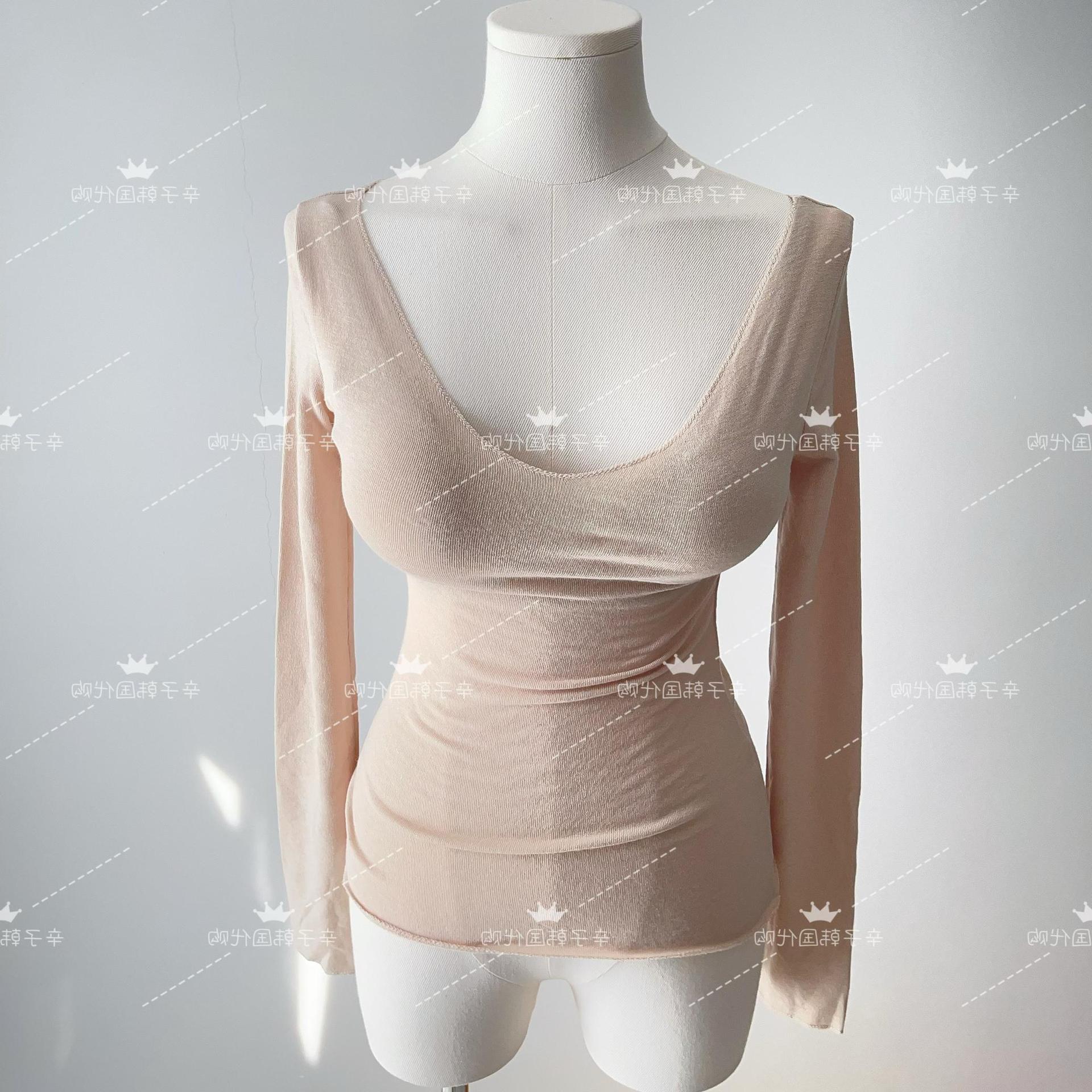 韓国東大門ネット赤女装2022春秋新長袖tシャツ女性修身セクシー微透底シャツ薄