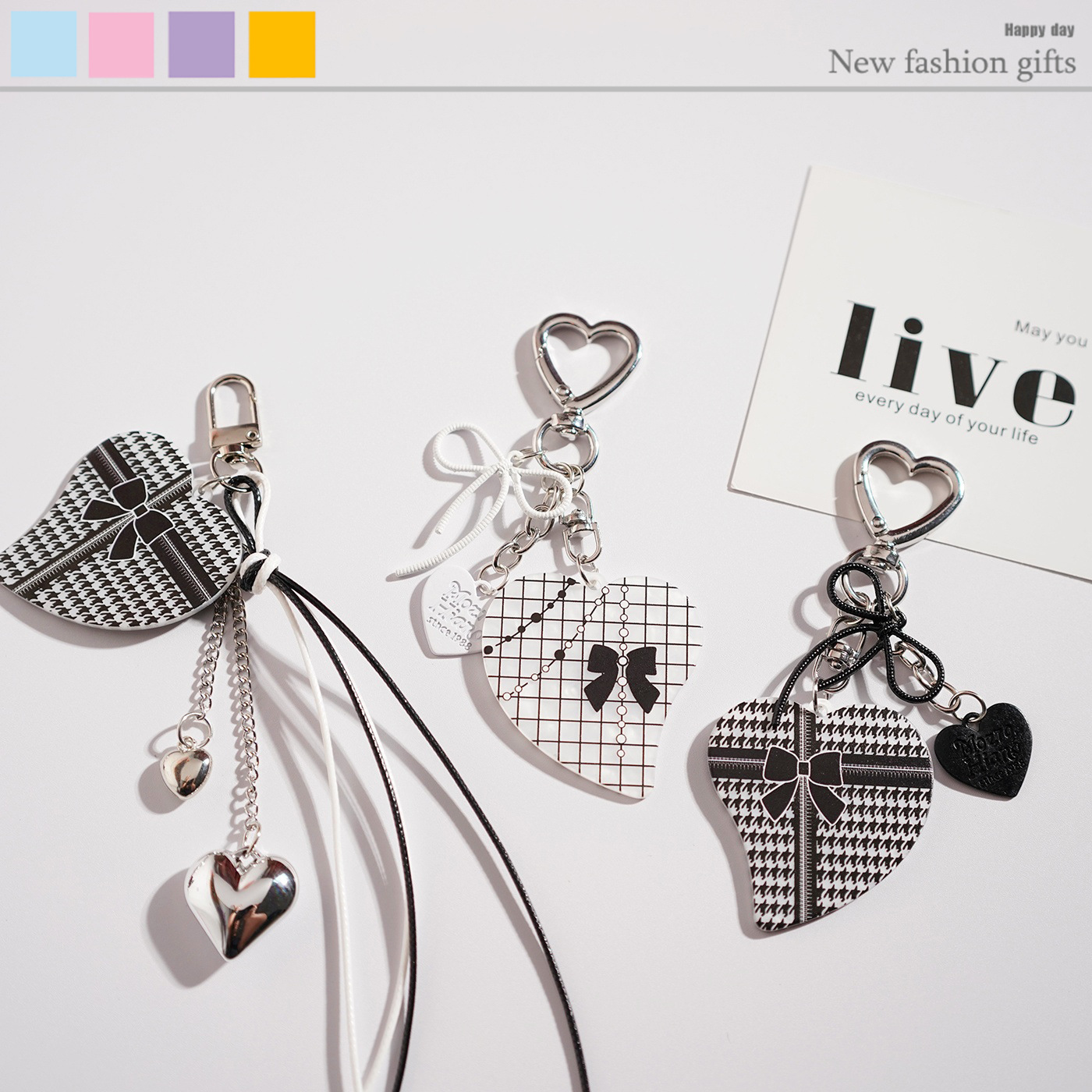新款可爱卡通爱心格子钥匙扣挂件包包挂饰小礼品汽车书包小红书