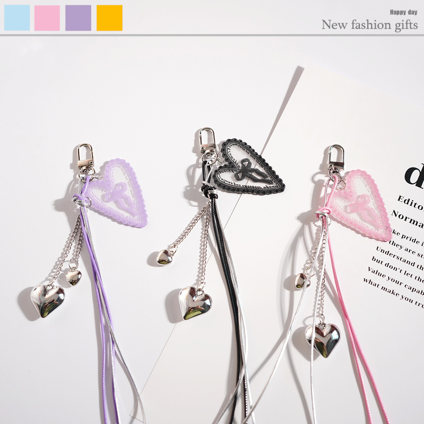 甘いクールなしわチェーンラブレター車のキーホルダーバッグペンダントインカップル携帯電話チェーン女性ギフト