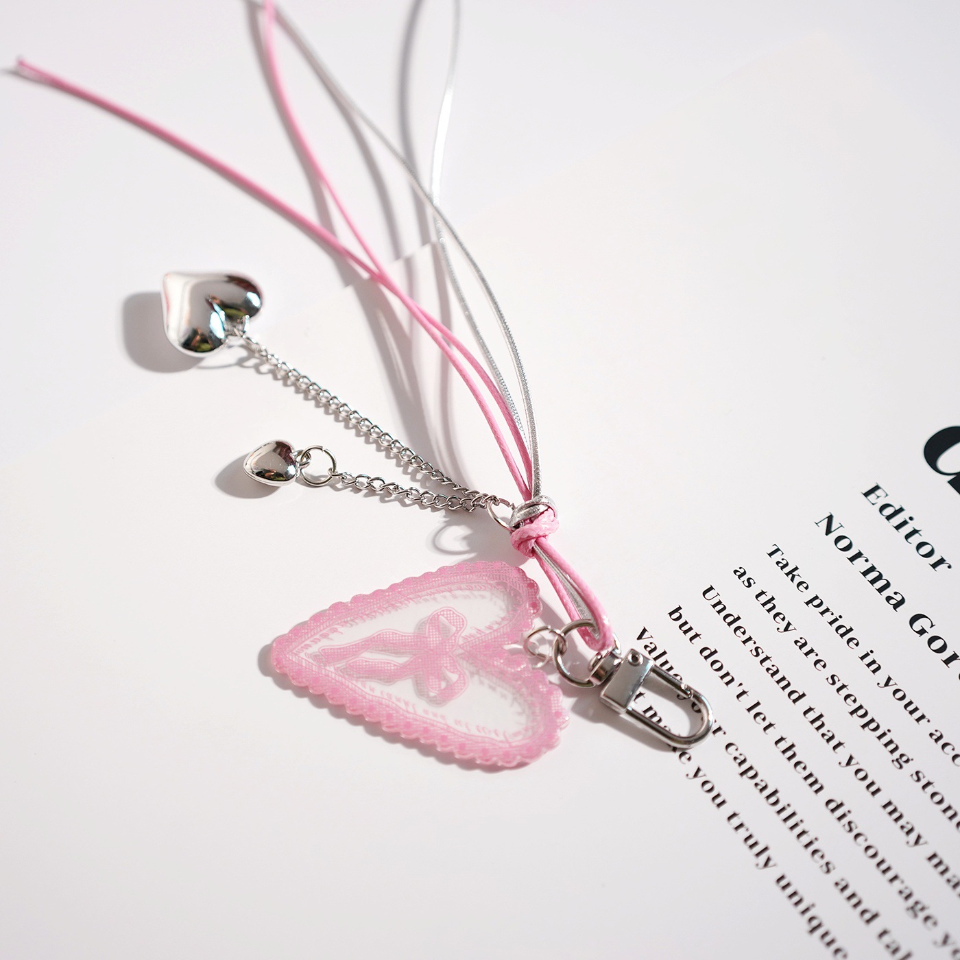 DIY オリジナルチェリーリボンアクリルビーズストラップガールハートバッグペンダントキーホルダーペンダント