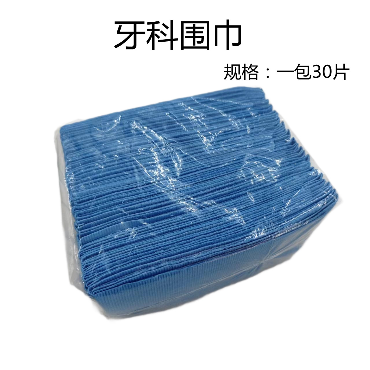 一次性围巾牙科一次性系带围兜齿科铺巾胸巾蓝色一包30片