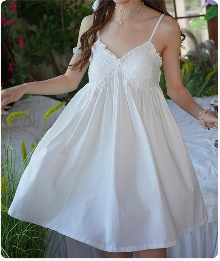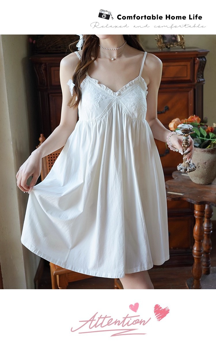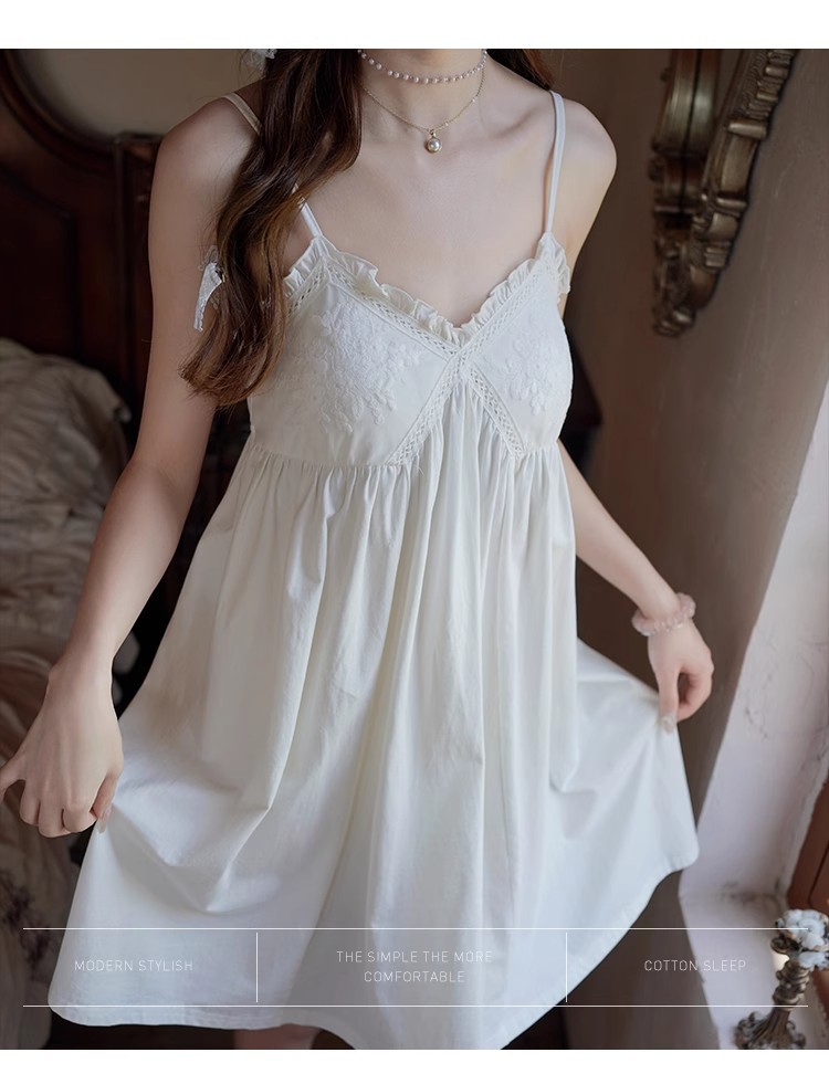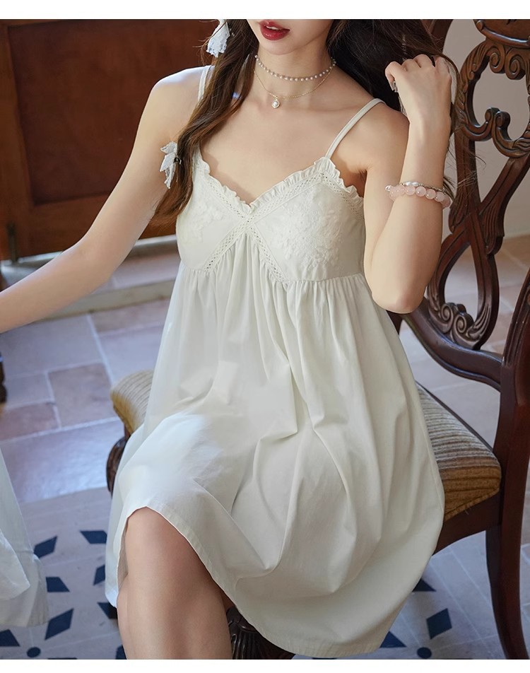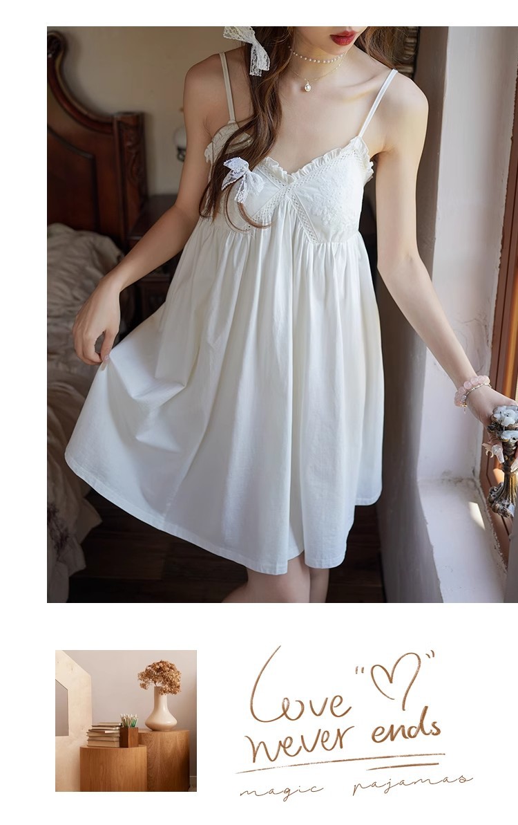 纯棉白色睡衣女带胸垫夏季宫廷公主风纯欲蕾丝小白裙吊带睡裙家居