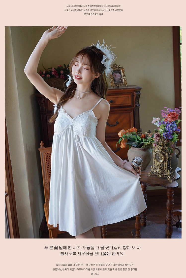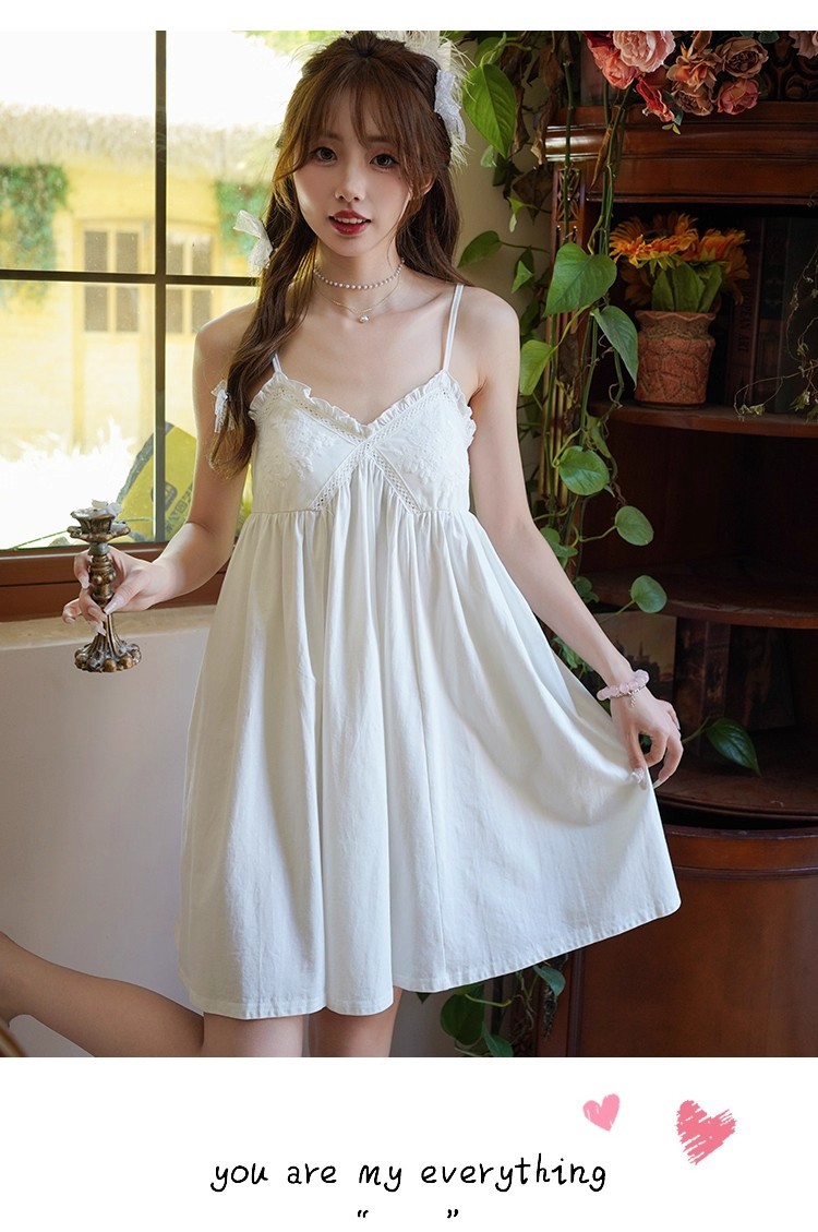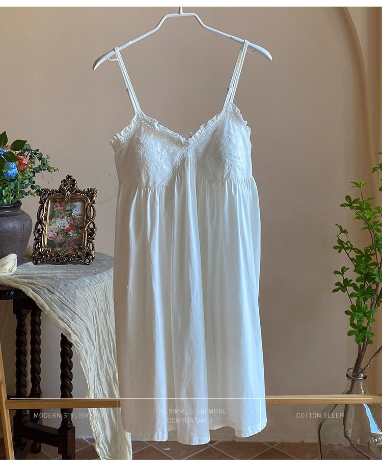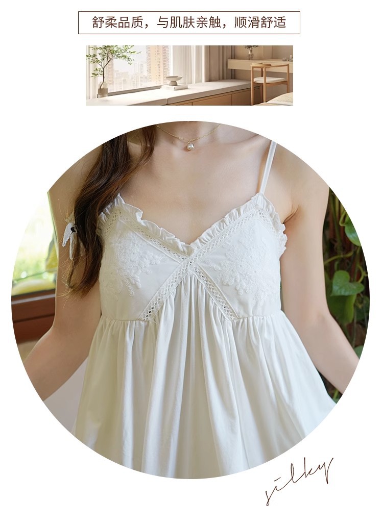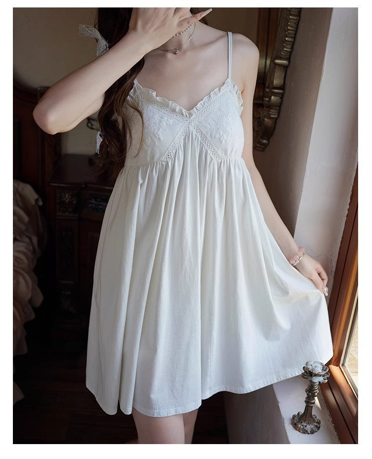 纯棉白色睡衣女带胸垫夏季宫廷公主风纯欲蕾丝小白裙吊带睡裙家居