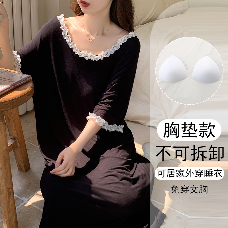 2025年新作女性用モーダルナイトガウン、半袖、夏用、薄手、甘くて快適、屋外でも着用可能(胸パッド付き)