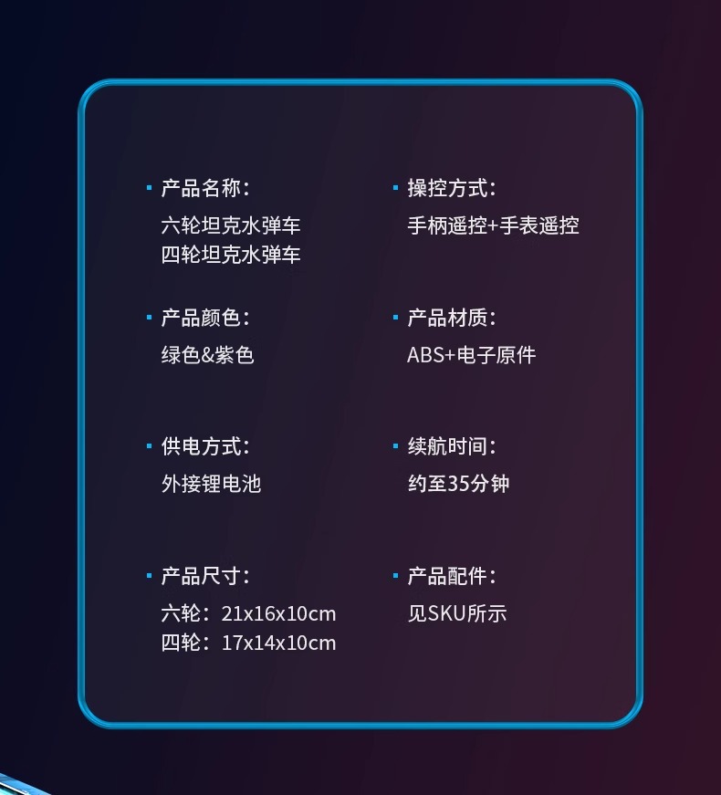颜色 六轮特技变形水弹坦克—绿色【手柄】,六轮特技变形水弹坦克—绿色【手表+手柄】,六轮特技变形水弹坦克—紫色【手柄】,六轮特技变形水弹坦克—紫色【手表+手柄】,四轮特技变形水弹坦克—绿色【手柄】,四轮特技变形水弹坦克—绿色【手表+手柄】,四轮特技变形水弹坦克—紫色【手柄】,四轮特技变形水弹坦克—紫色【手表+手柄】