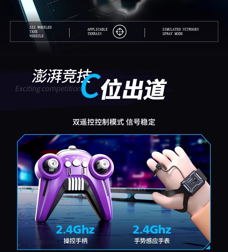 跨境2.4G六轮遥控坦克手势感应变形攀爬可发射水弹遥控车儿童玩具