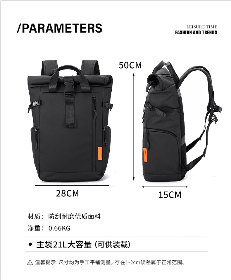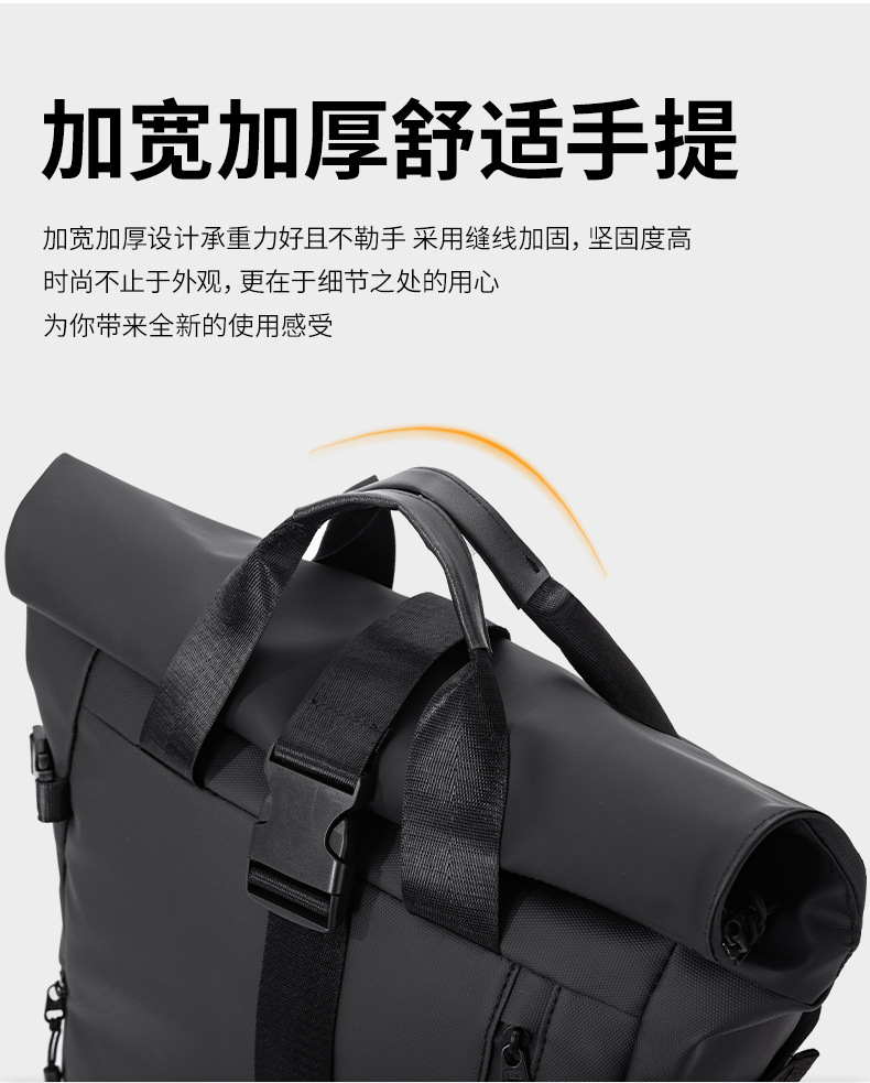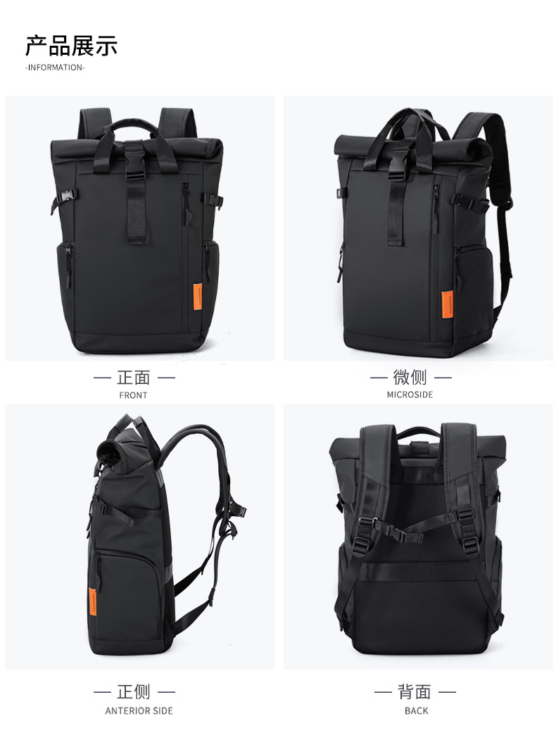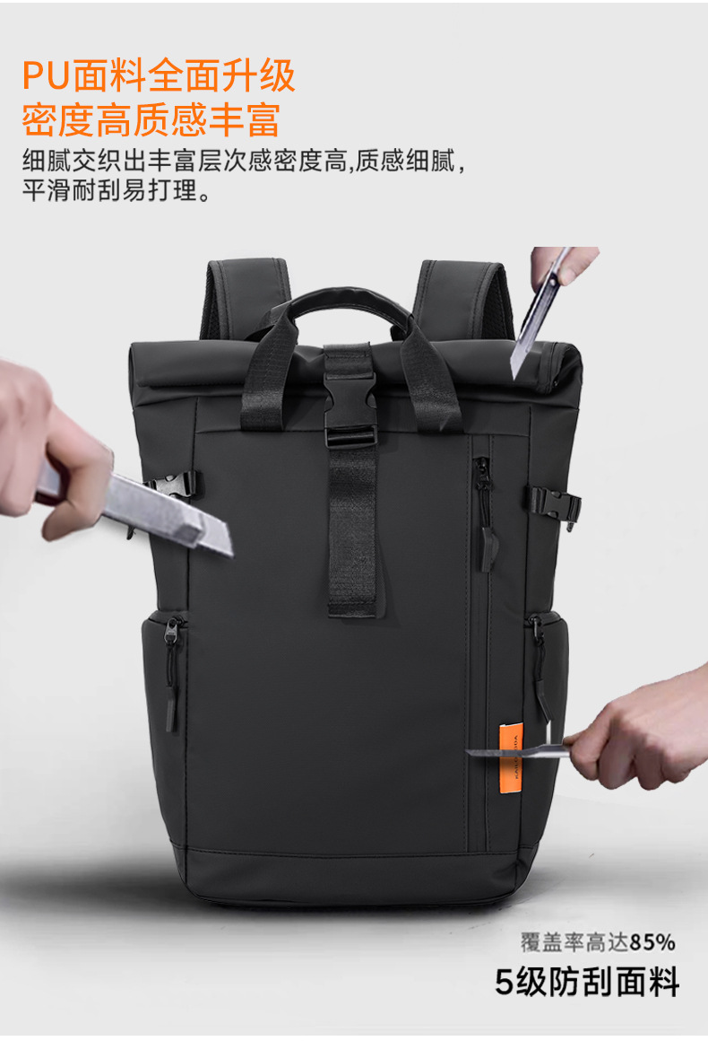 跨境新品卷边扩容商务电脑双肩背包大容量防水皮膜休闲旅行双肩背