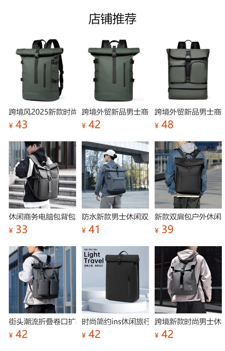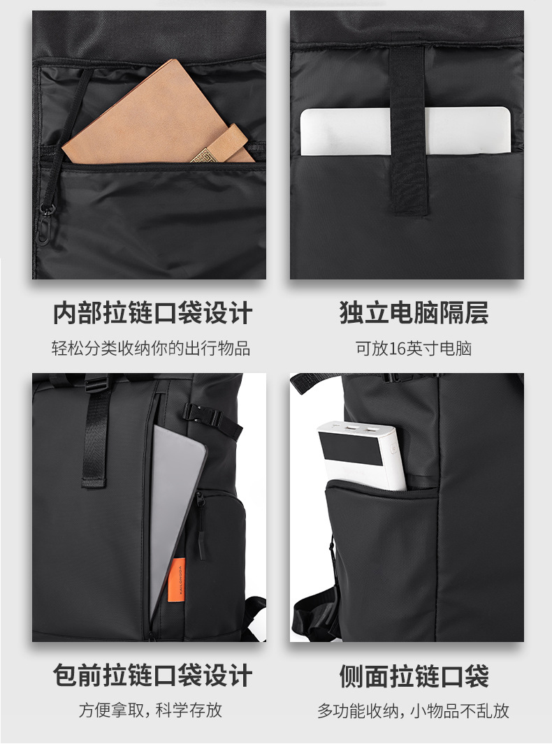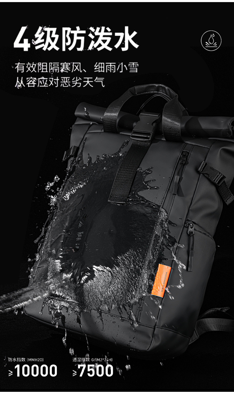 跨境新品卷边扩容商务电脑双肩背包大容量防水皮膜休闲旅行双肩背