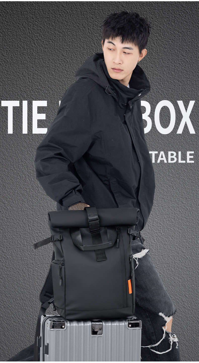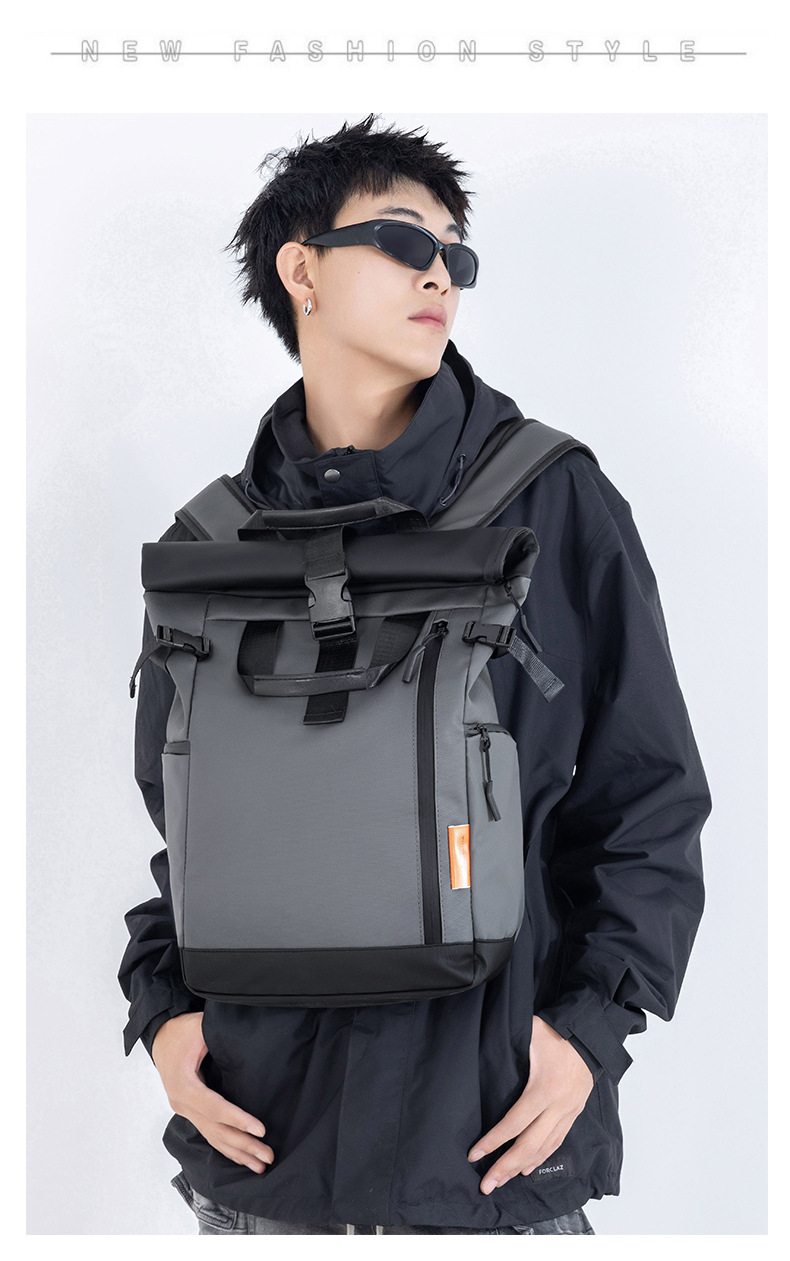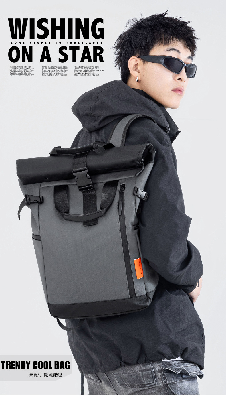 新型街頭ファッション旅行ランドセルファッション機能風アウトドアスポーツバックパック折り畳み巻き口レジャーバッグ男