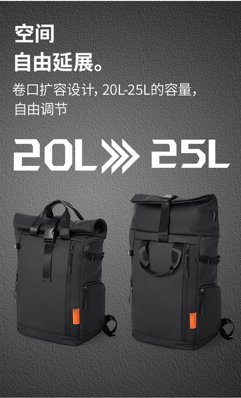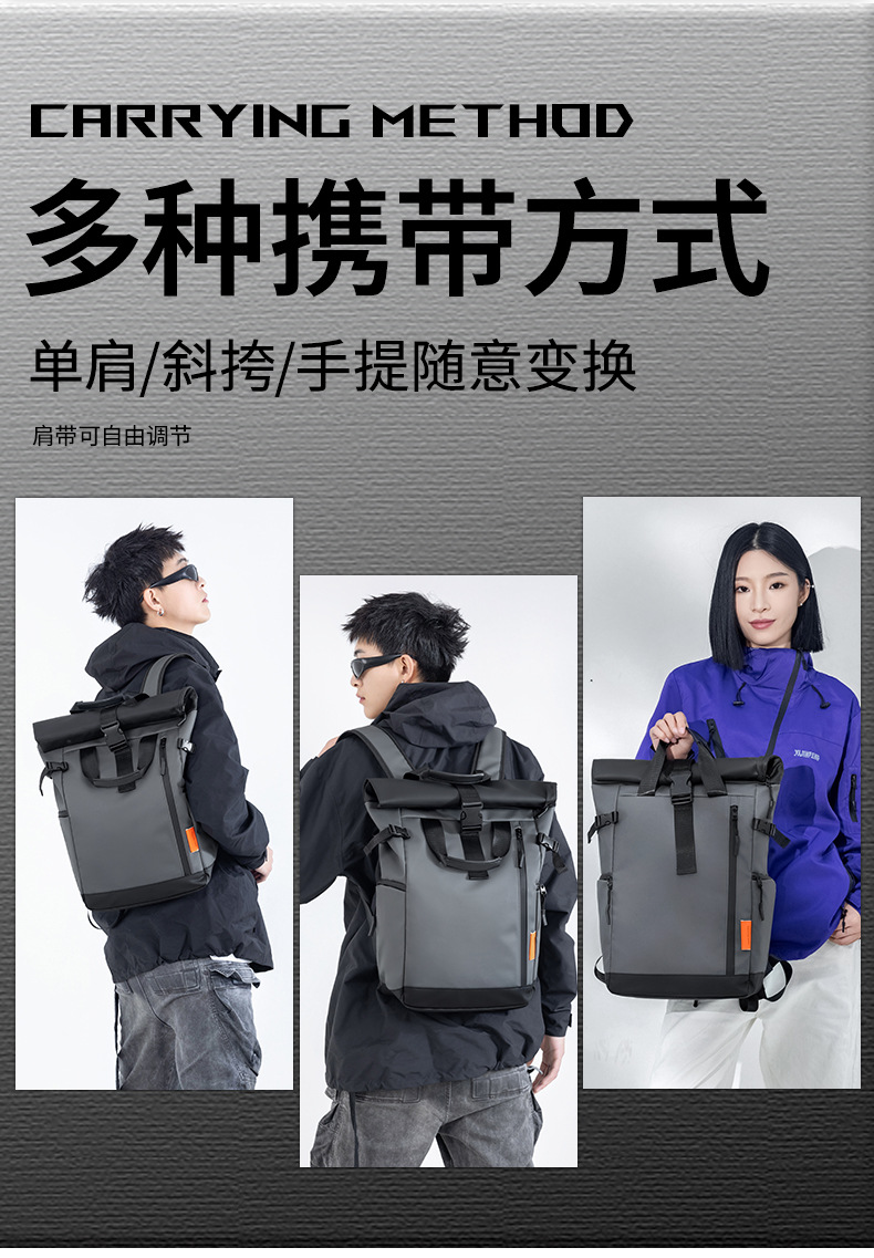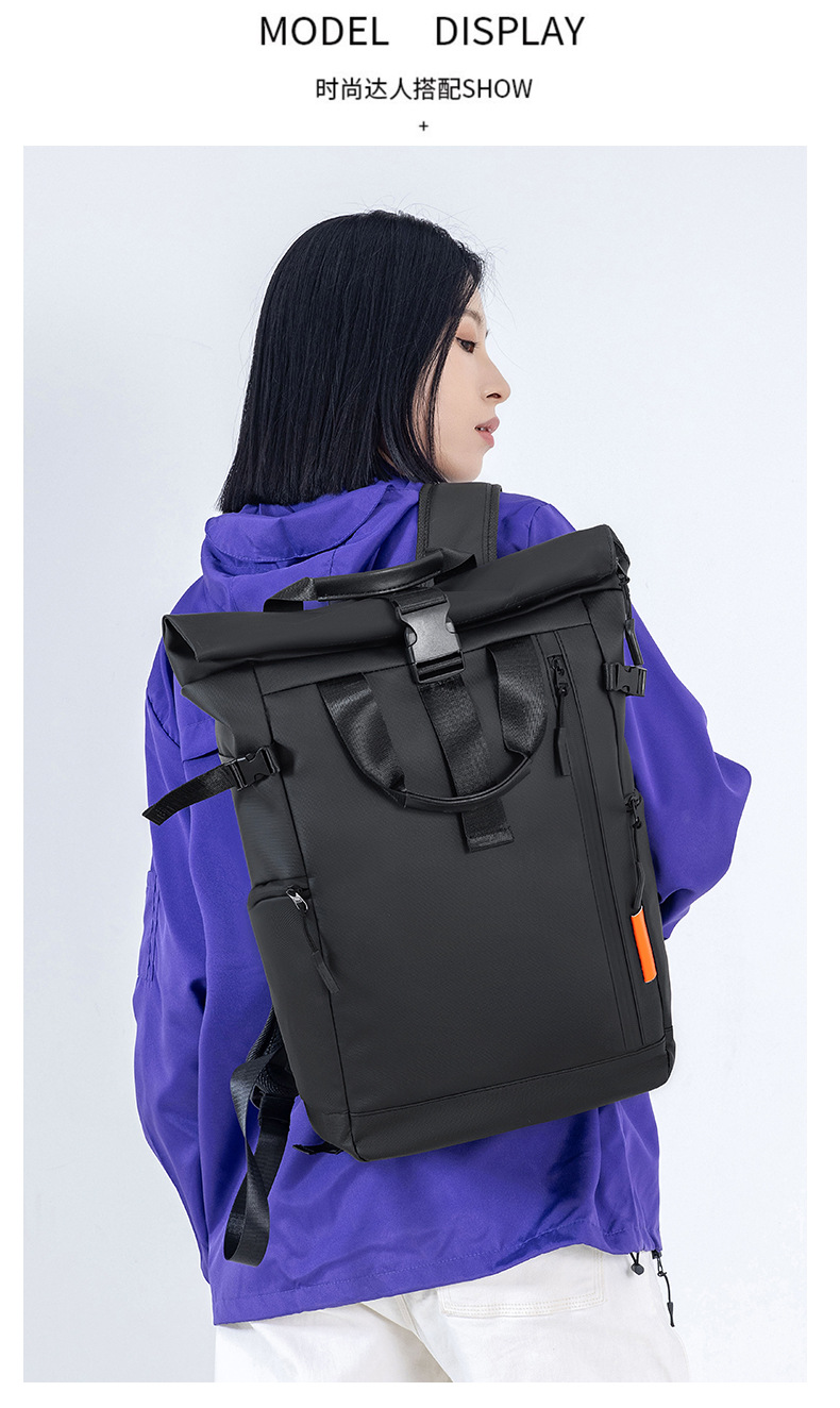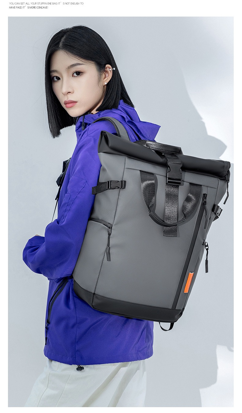 大容量折叠卷口双肩包男女同款潮流休闲背包户外旅行双肩包电脑包