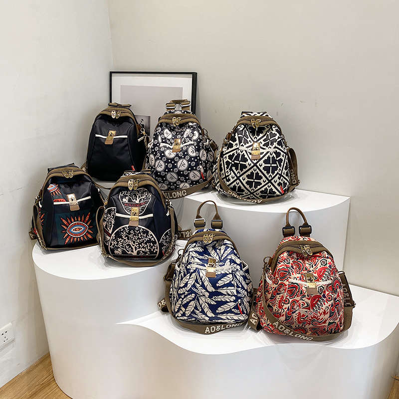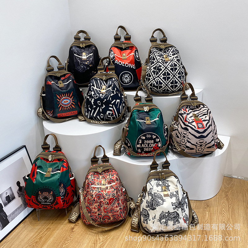クロスボーダー小吉象旅行バックパック女性の 2025 新しいファッションプリントナイロン布女性のバックパックカジュアル防水