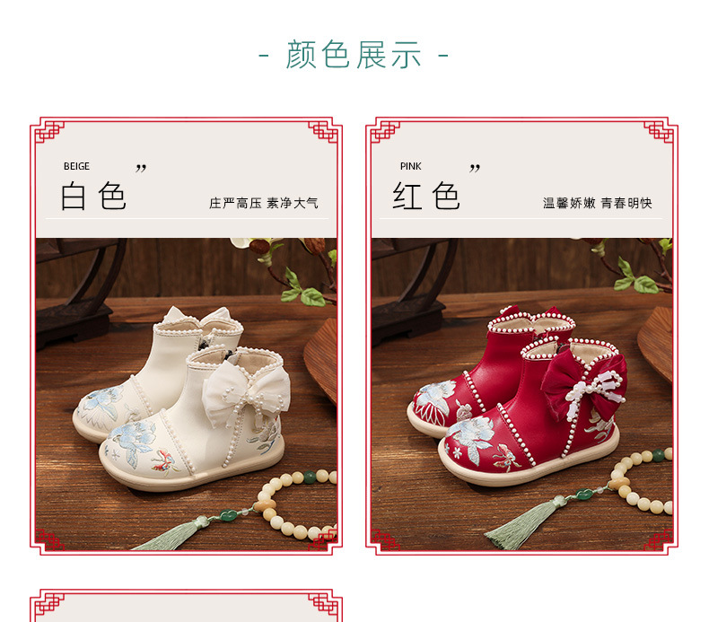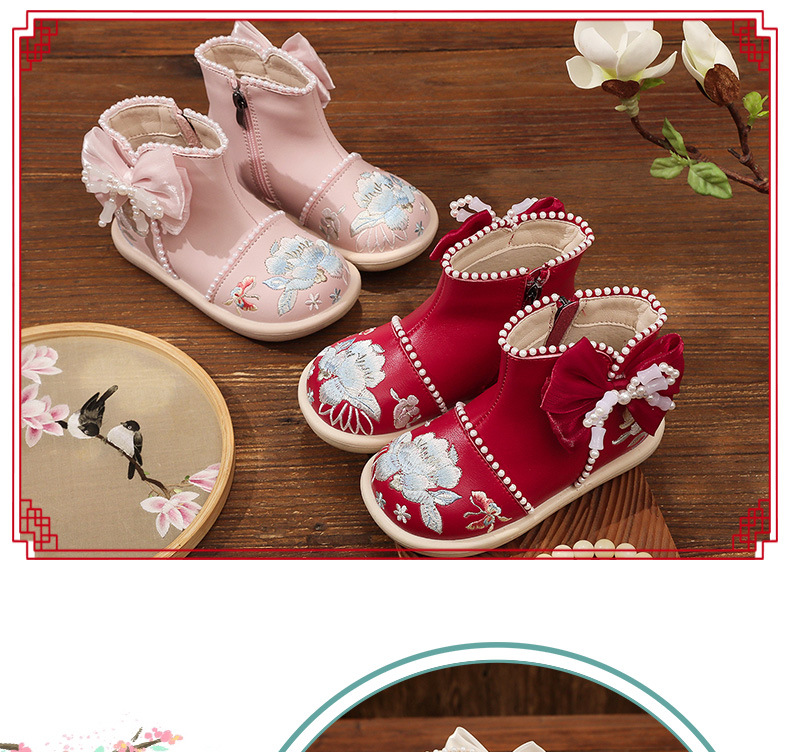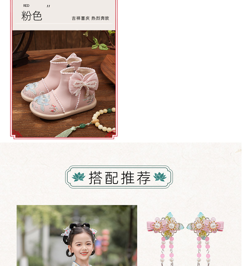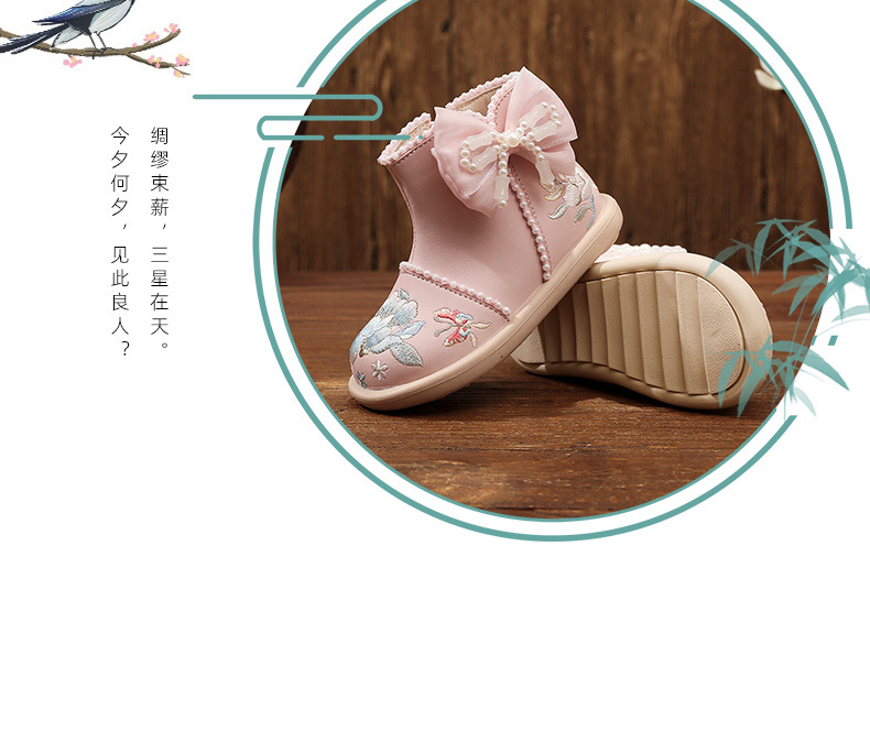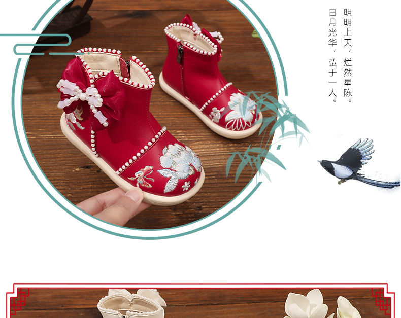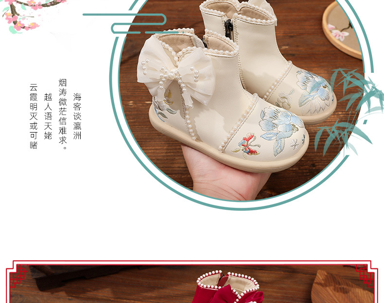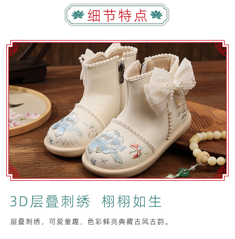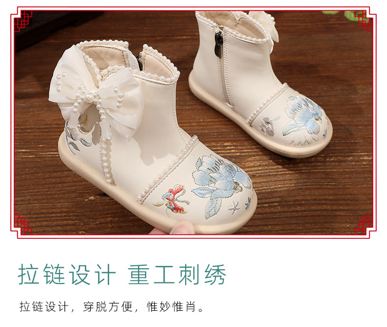 女童汉服鞋四季加绒儿童雪地靴民族风绣花鞋古装宝宝拜年中国风
