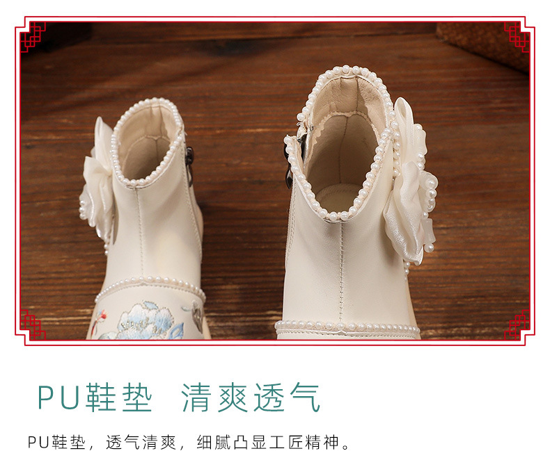 马年新款女童汉服鞋古风汉服靴子古装儿童绣花鞋冬季加绒拜年棉鞋
